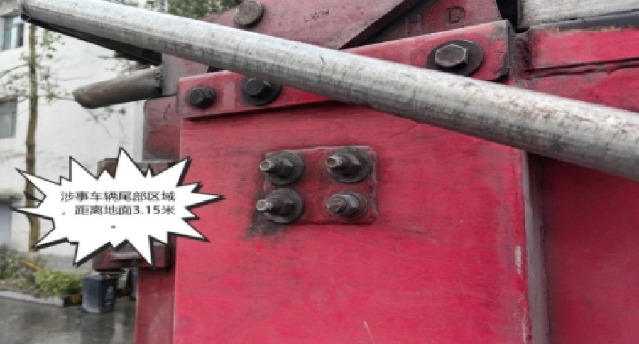图2涉事车辆尾部(与操作平台栏杆发生擦挂部位)