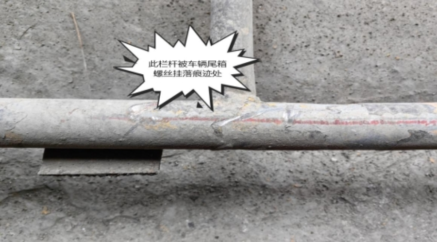 图3 事故中被车辆挂掉的纵向栏杆(掉在地上)