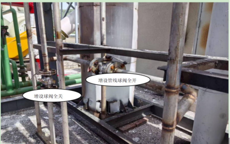 一车间顶楼T1071/T1072两套蒸馏塔系统冷凝器后气液分离器液相采出管之间联通管线球阀全开,T1071气液分离器出口增设的球阀全关。如图4所示。