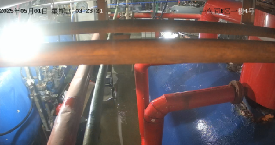 图5 二层钢平台V1072B前馏分接收罐甲醇蒸馏液溢流位置