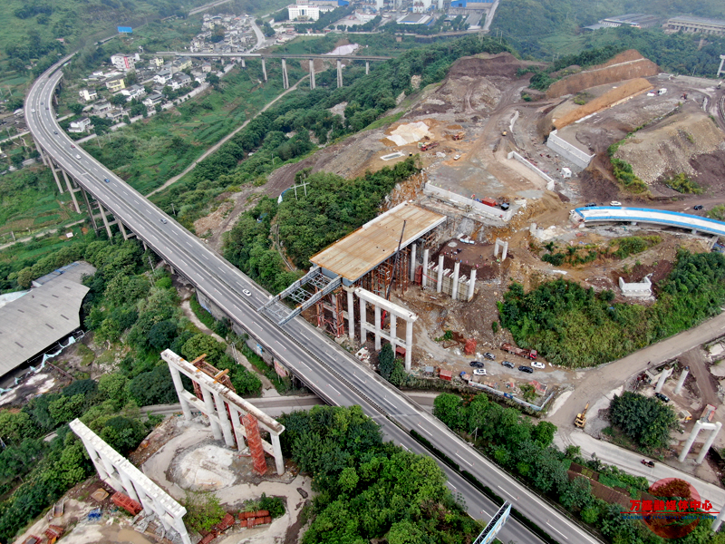 温塘村特大桥进行横跨綦万高速公路钢箱梁顶推施工