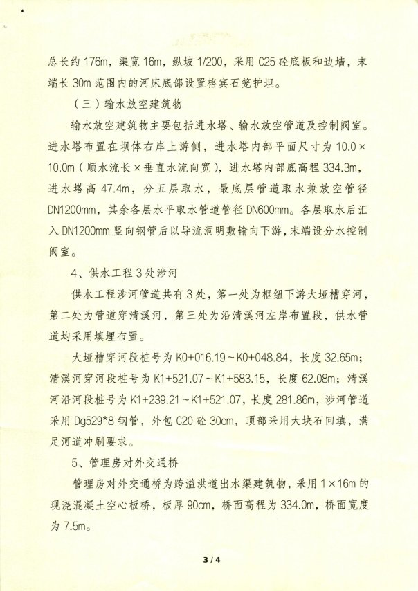 大垭槽穿河段桩号为K0+016.19~KO+048.84,长度32.65m;清溪河穿河段桩号为K1+521.07~K1+583.15,长度62.08m;清溪河沿河段桩号为K1+239.21~K1+521.07,长度281.86m,涉河管道采用Dg529*8钢管,外包C20砼30cm,顶部采用大块石回镇,满足河道冲刷要求。