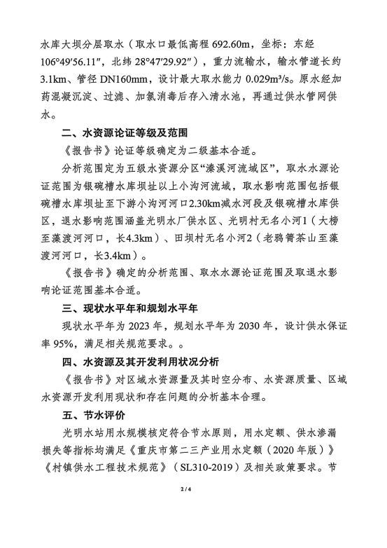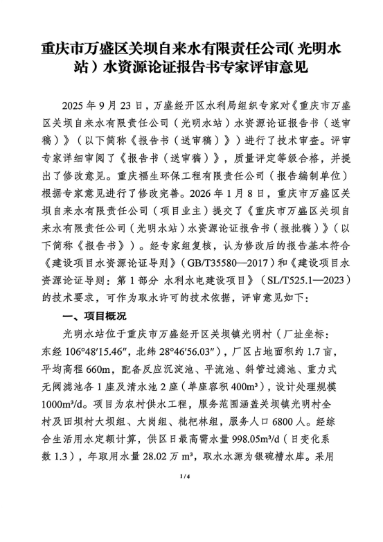 2.重庆市万盛区关坝自来水有限责任公司(光明水站)水资源论证报告书专家评审意见