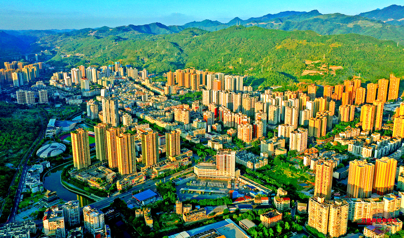 近日傍晚,落日余晖洒向万盛城区,林立的高楼镀上了一层金色,整座城市显得熠熠生辉。