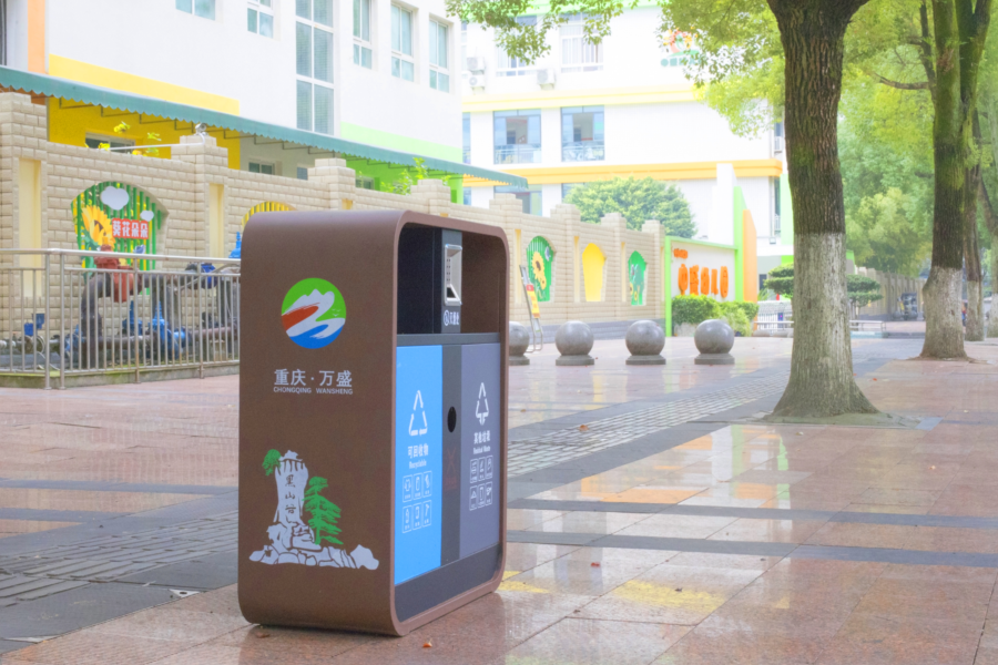 区城市管理局:万盛街头上新一批“高颜值”果皮箱