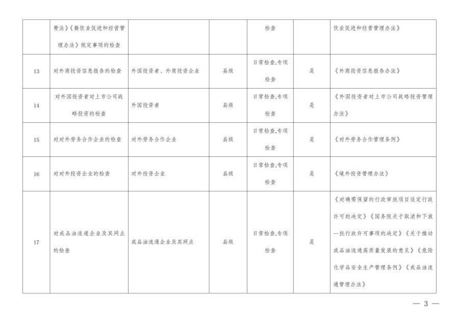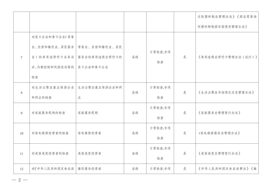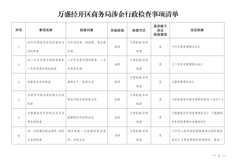 重庆市万盛经开区商务局涉企行政检查事项清单
