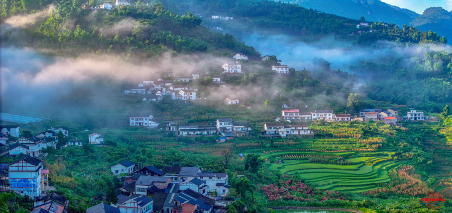近日,黑山镇天星村绿意盎然,层层梯田、远山、农家、与晨雾相映成趣,勾勒出一幅生机盎然的山乡生态画卷。