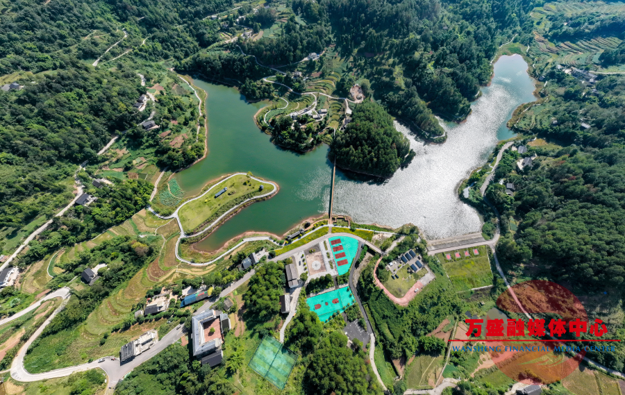 近日,金桥镇金蝶湖,阳光洒在湖面上,绿树碧水,从空中俯瞰,宛如一只蝴蝶飞舞山间。