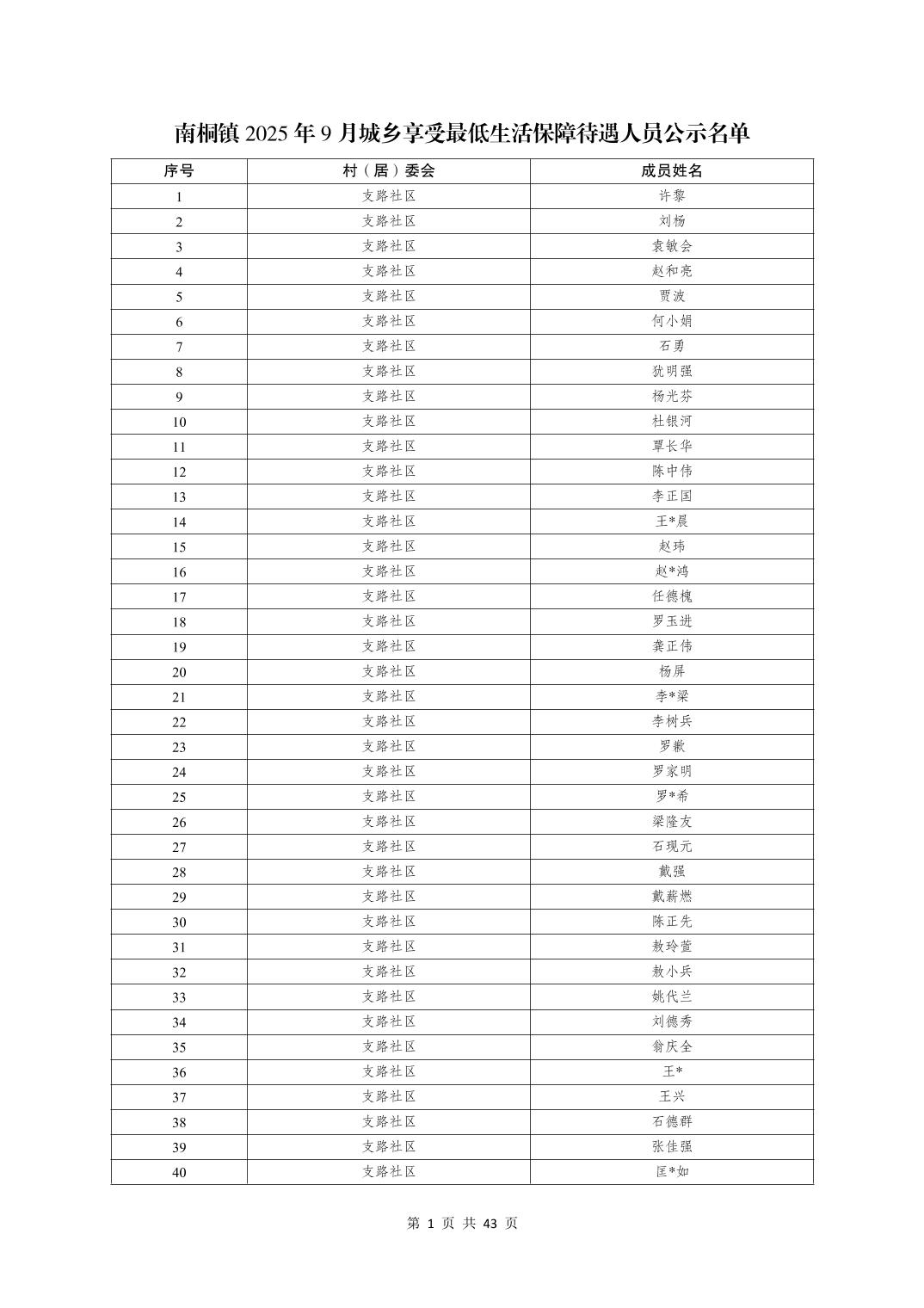 南桐镇2025年9月城乡享受最低生活保障待遇人员公示名单