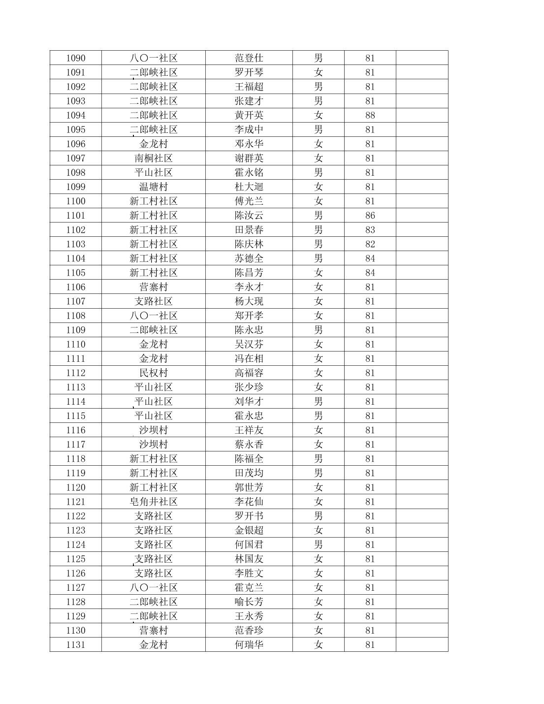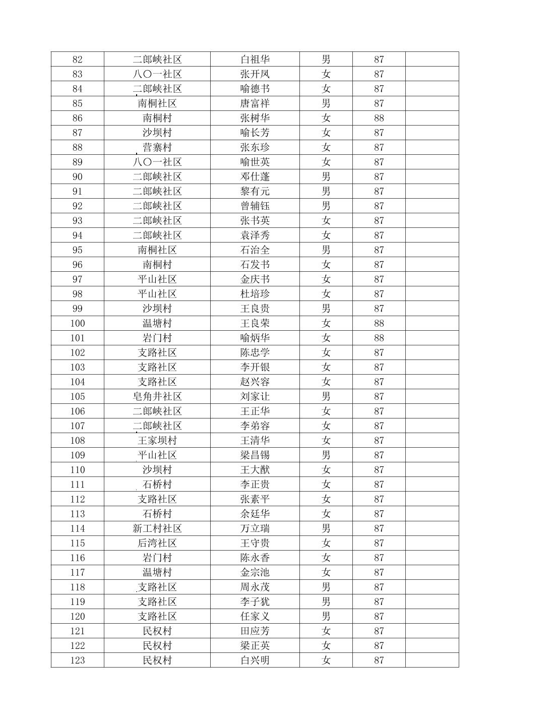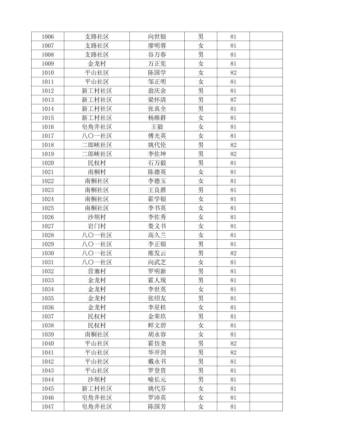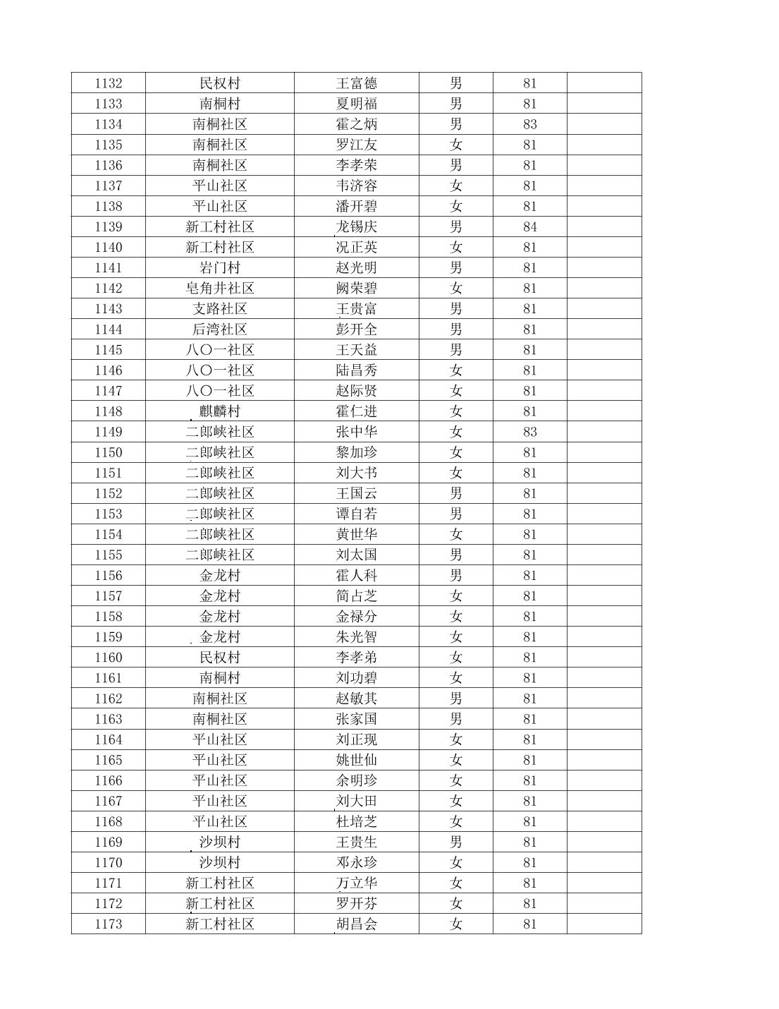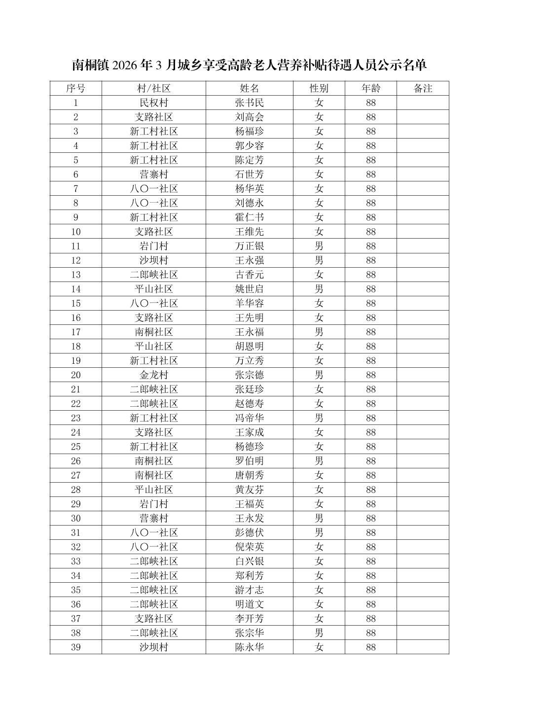 南桐镇2026年3月城乡享受高龄老人营养补贴待遇人员公示名单