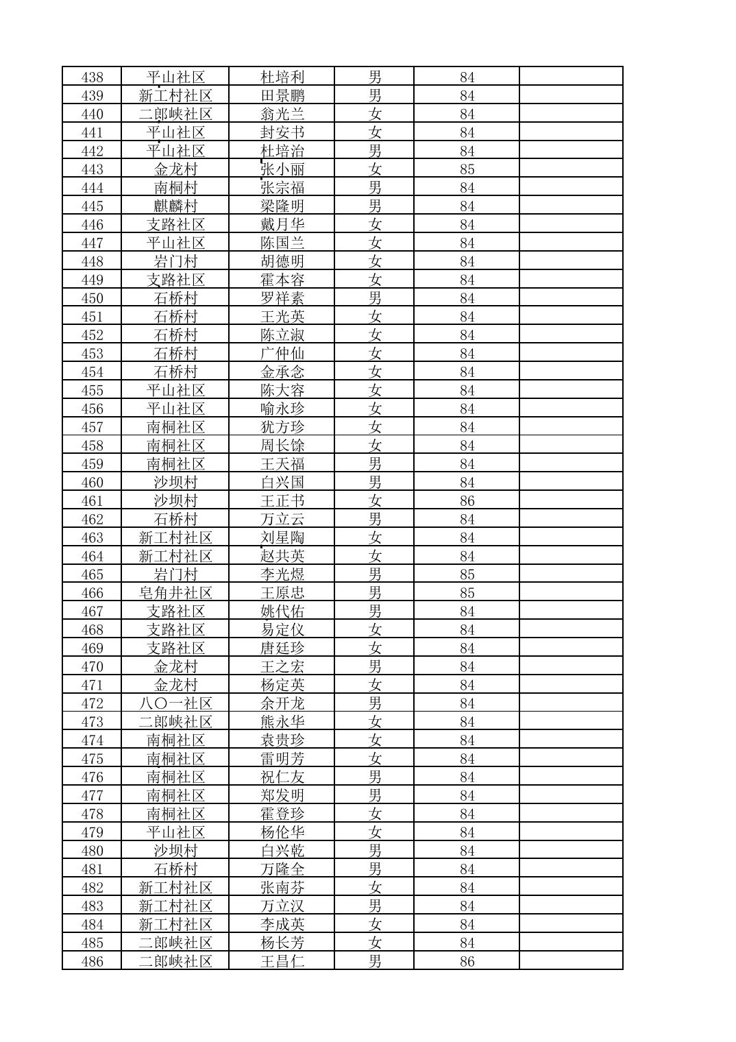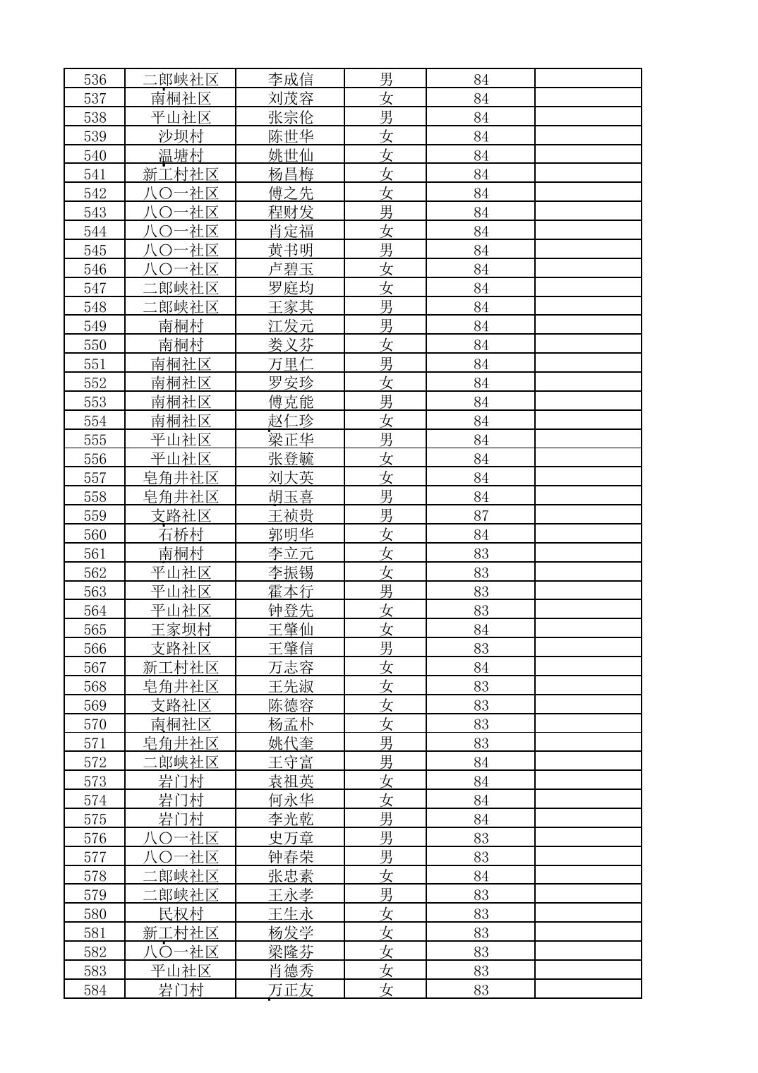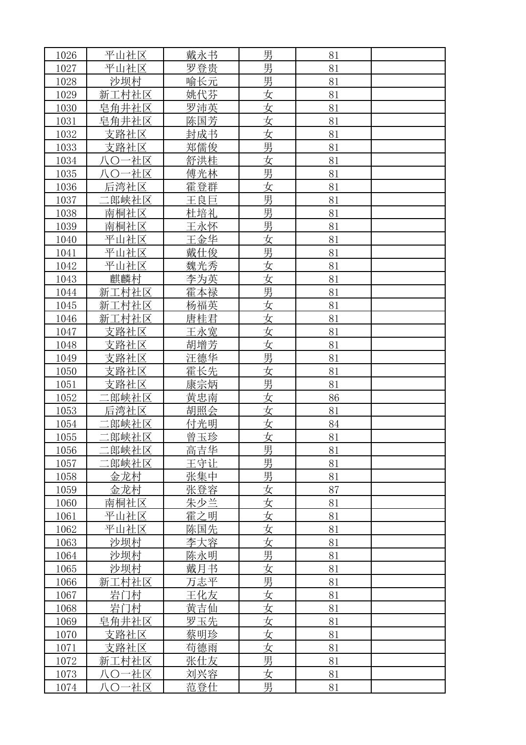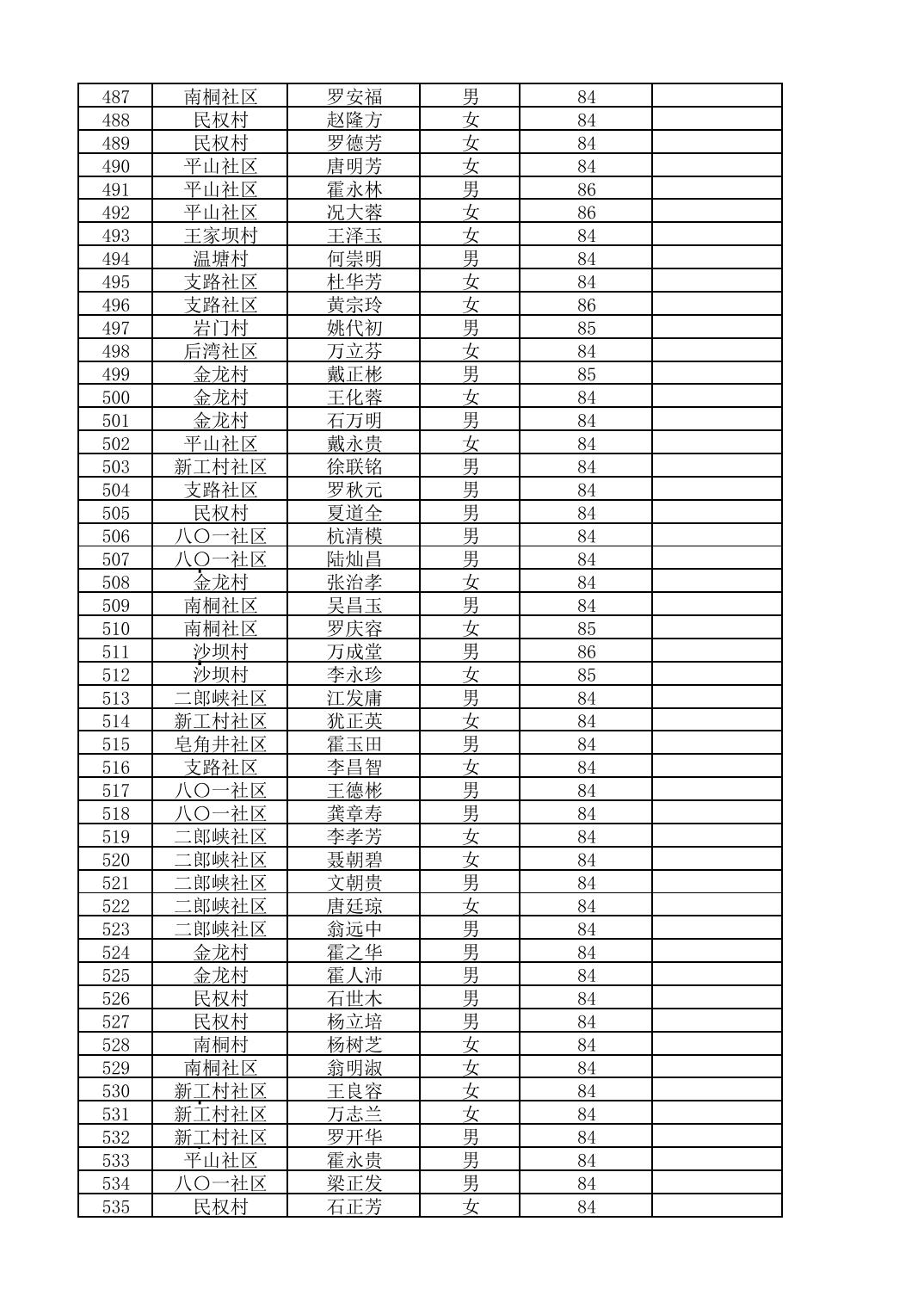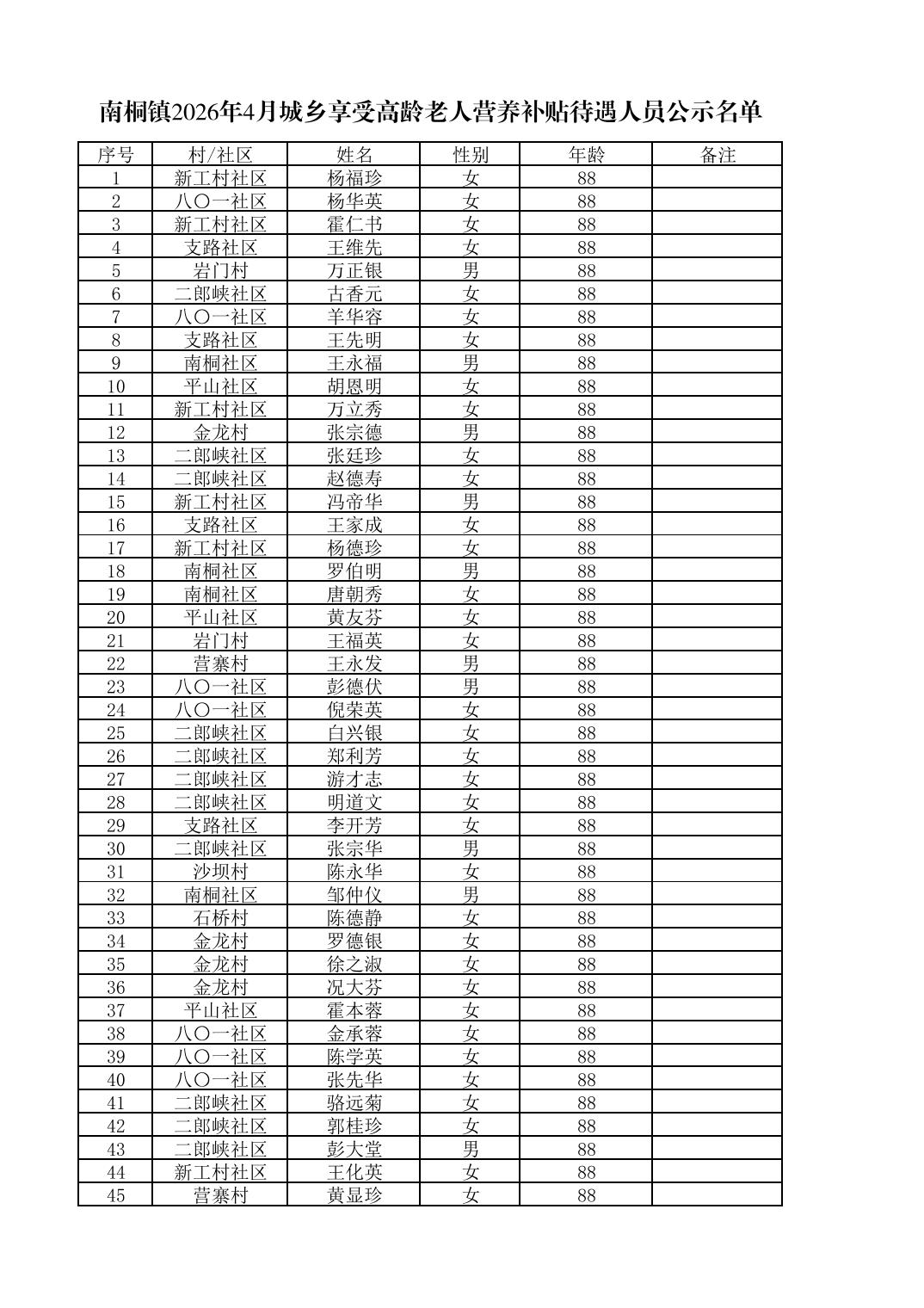 南桐镇2026年4月城乡享受高龄老人营养补贴待遇人员公示名单