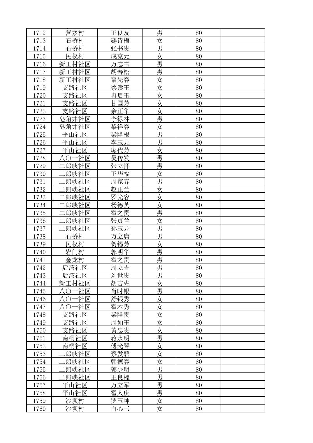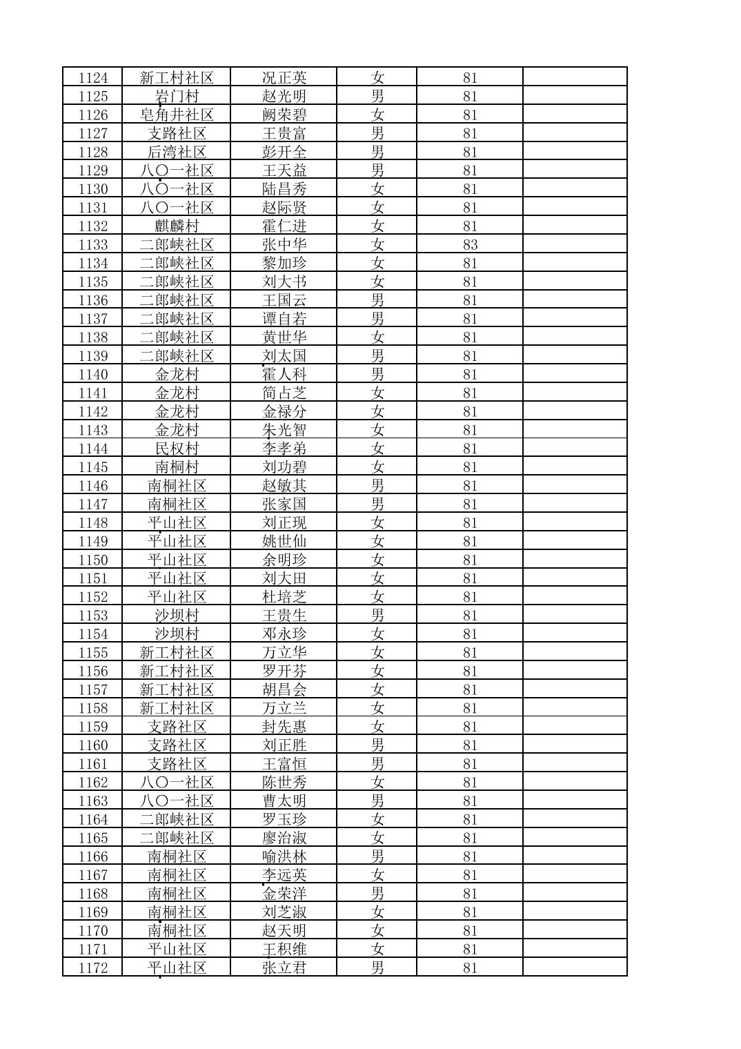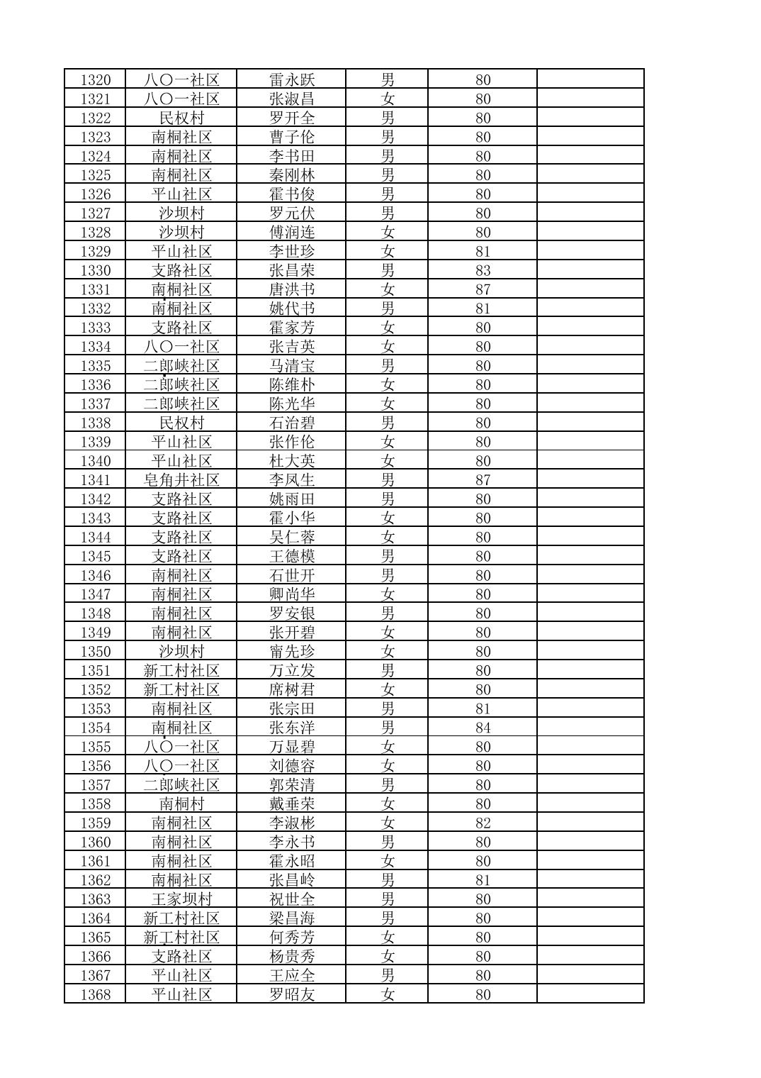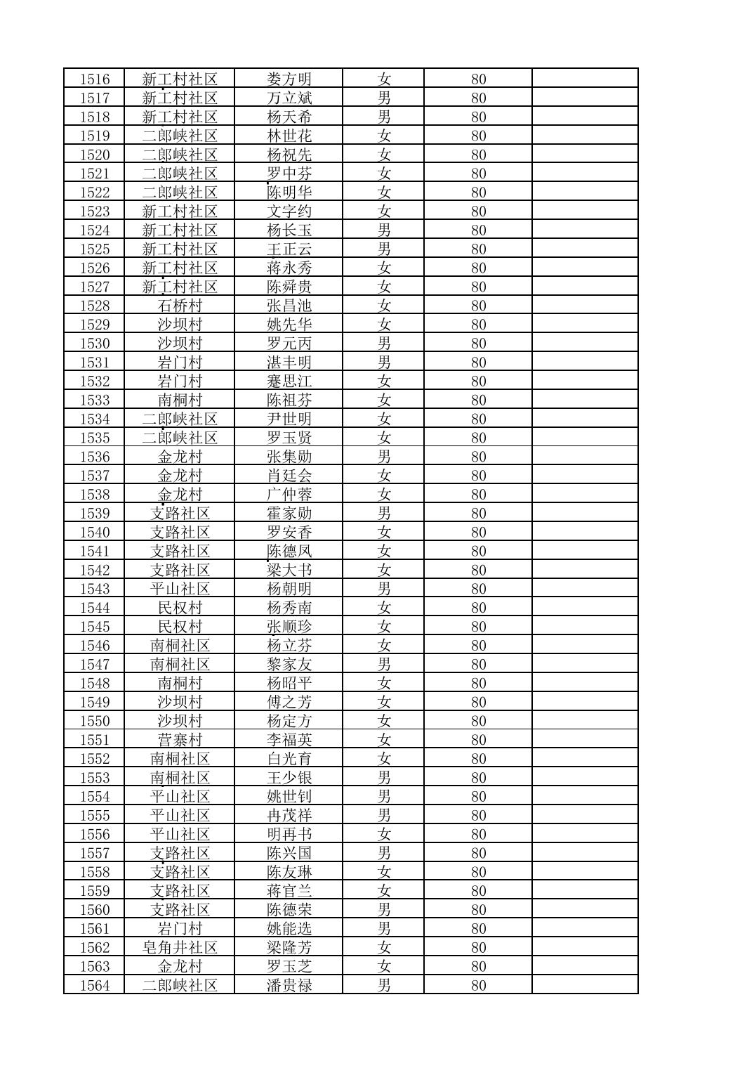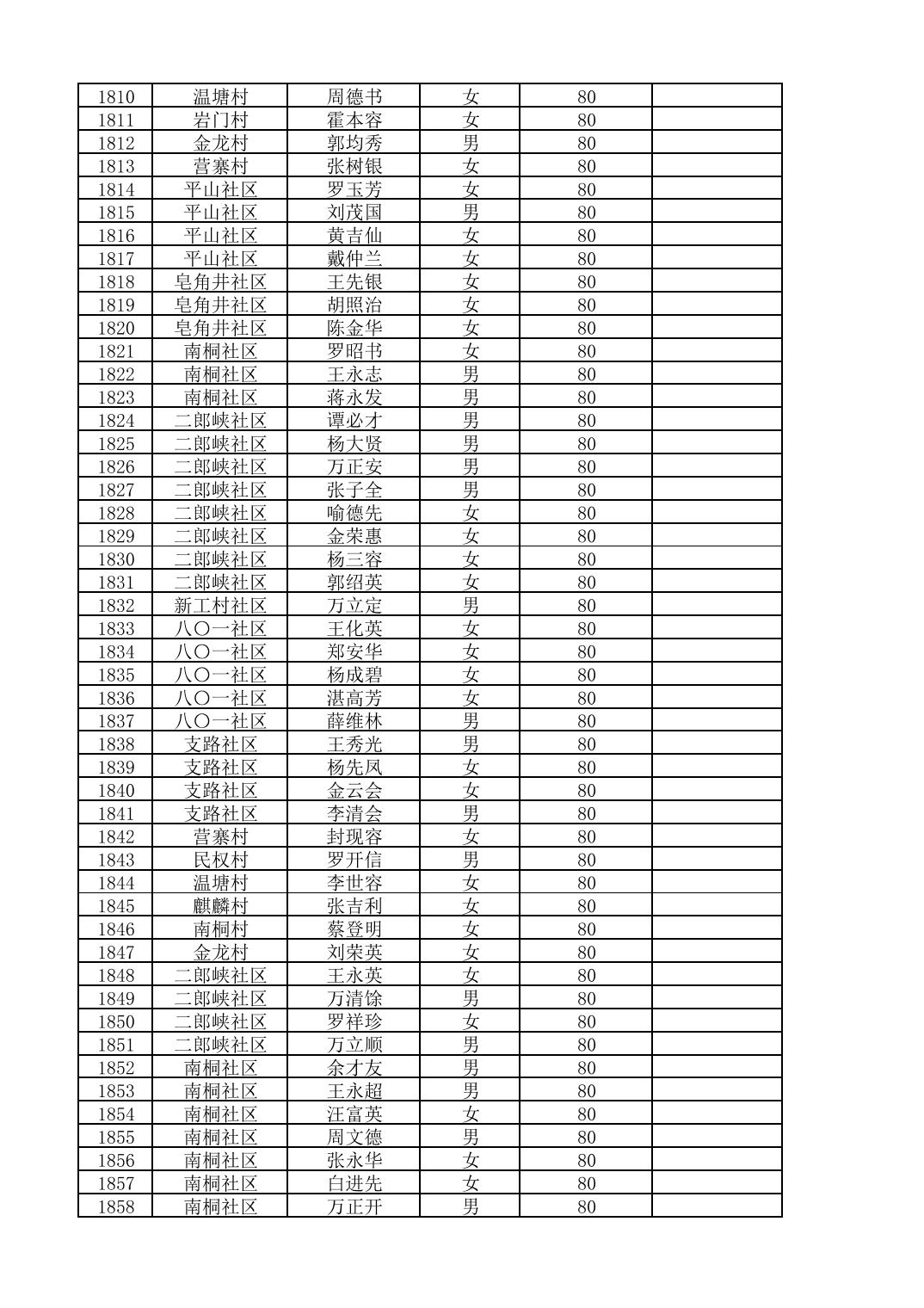 南桐镇2026年4月城乡享受高龄老人营养补贴待遇人员公示名单