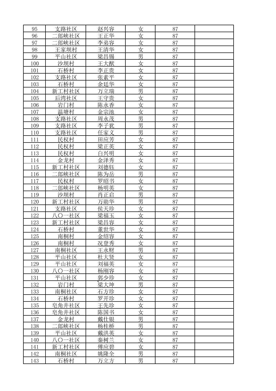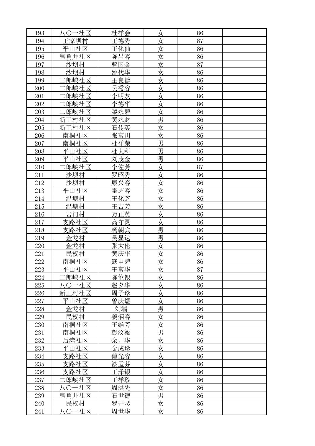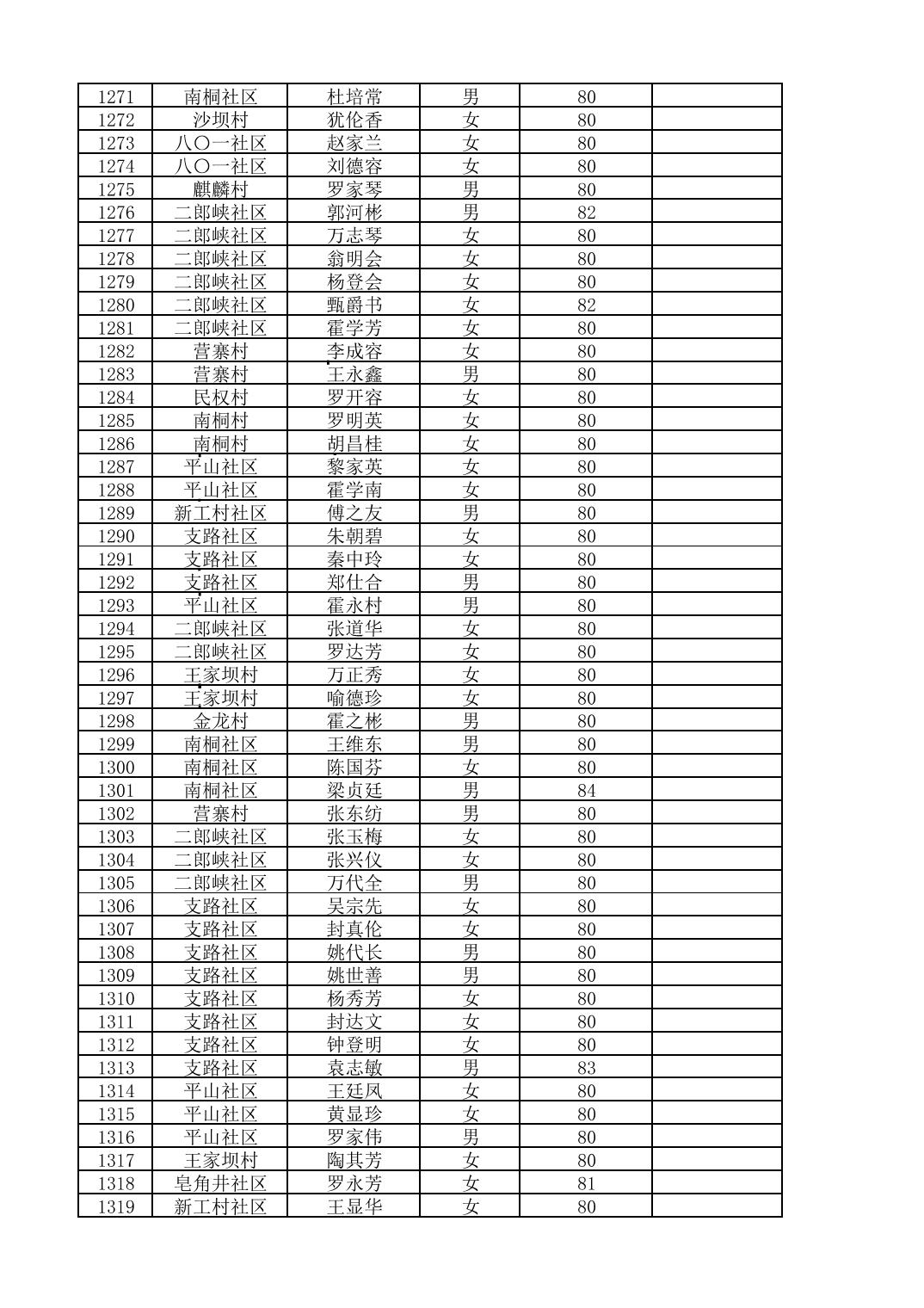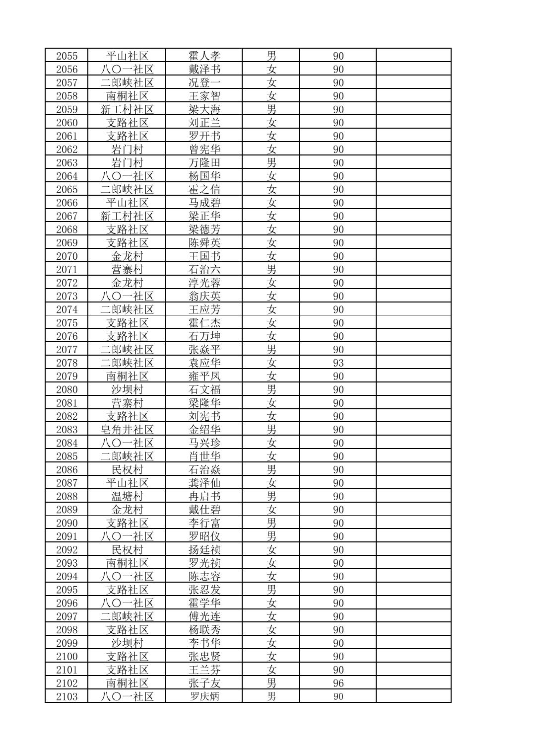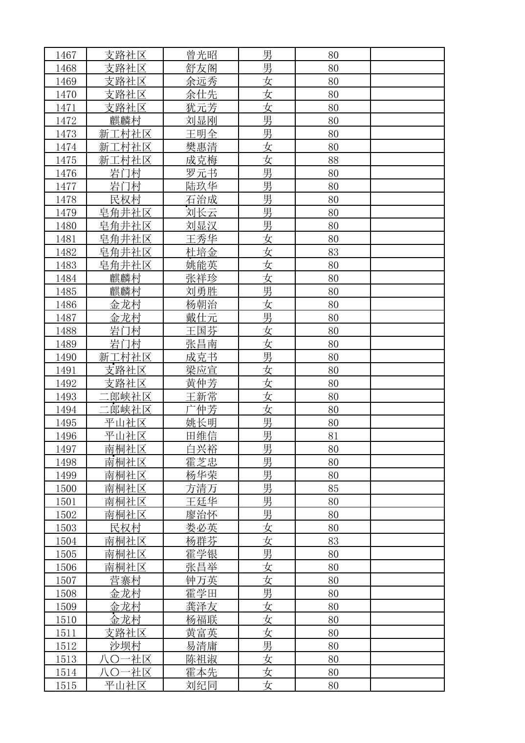 南桐镇2026年4月城乡享受高龄老人营养补贴待遇人员公示名单