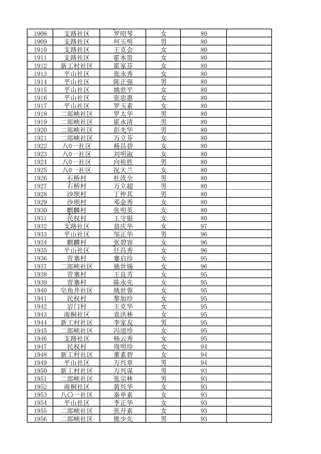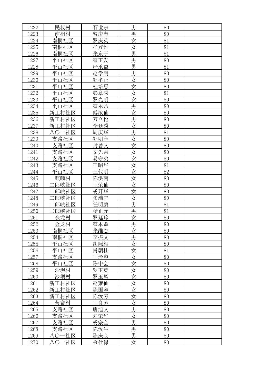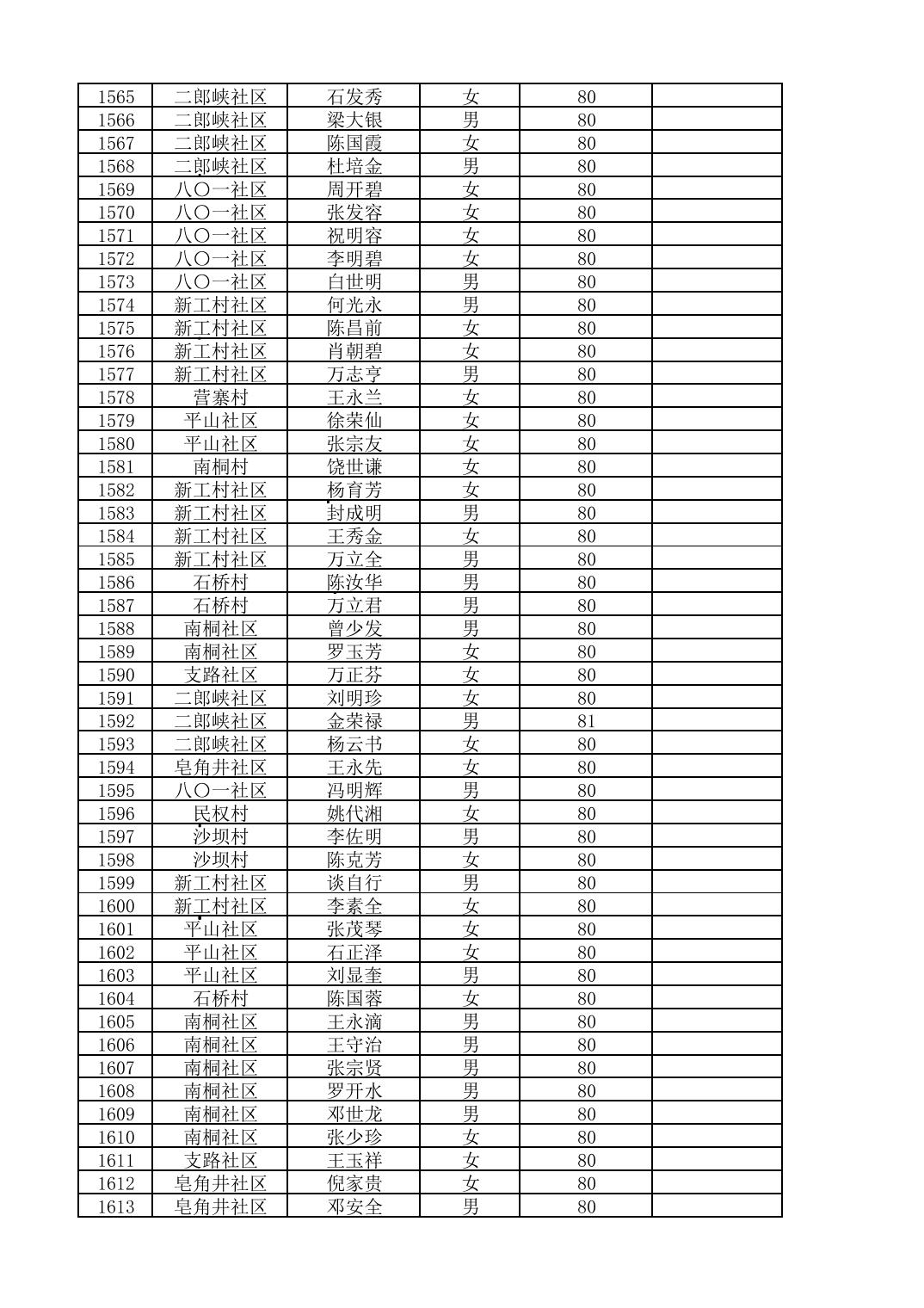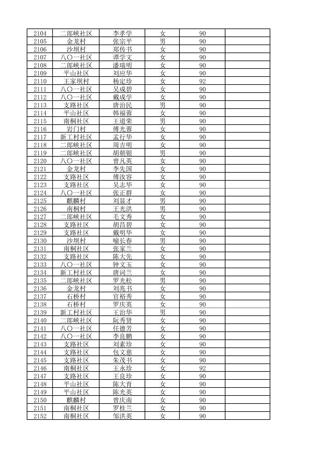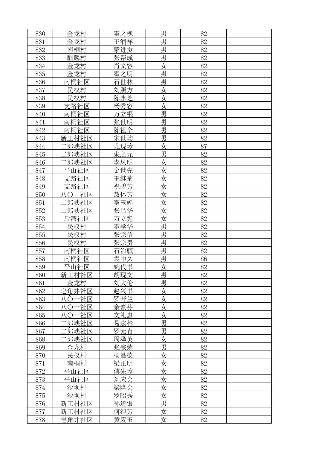 南桐镇2026年4月城乡享受高龄老人营养补贴待遇人员公示名单