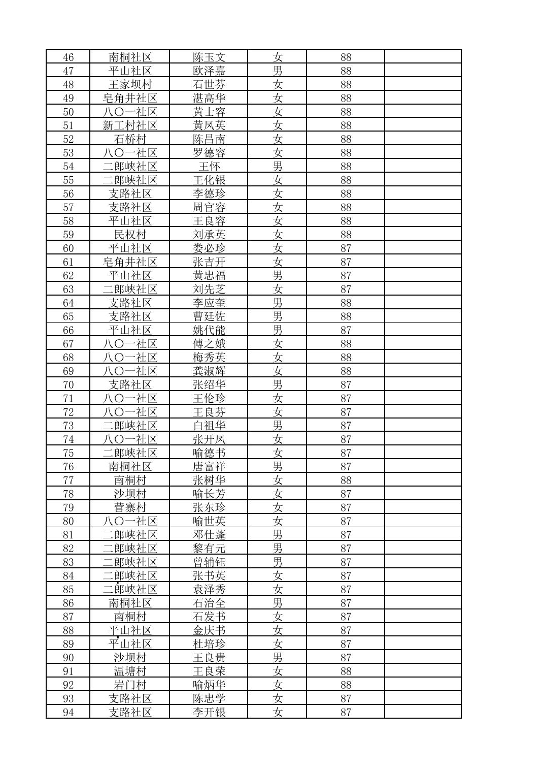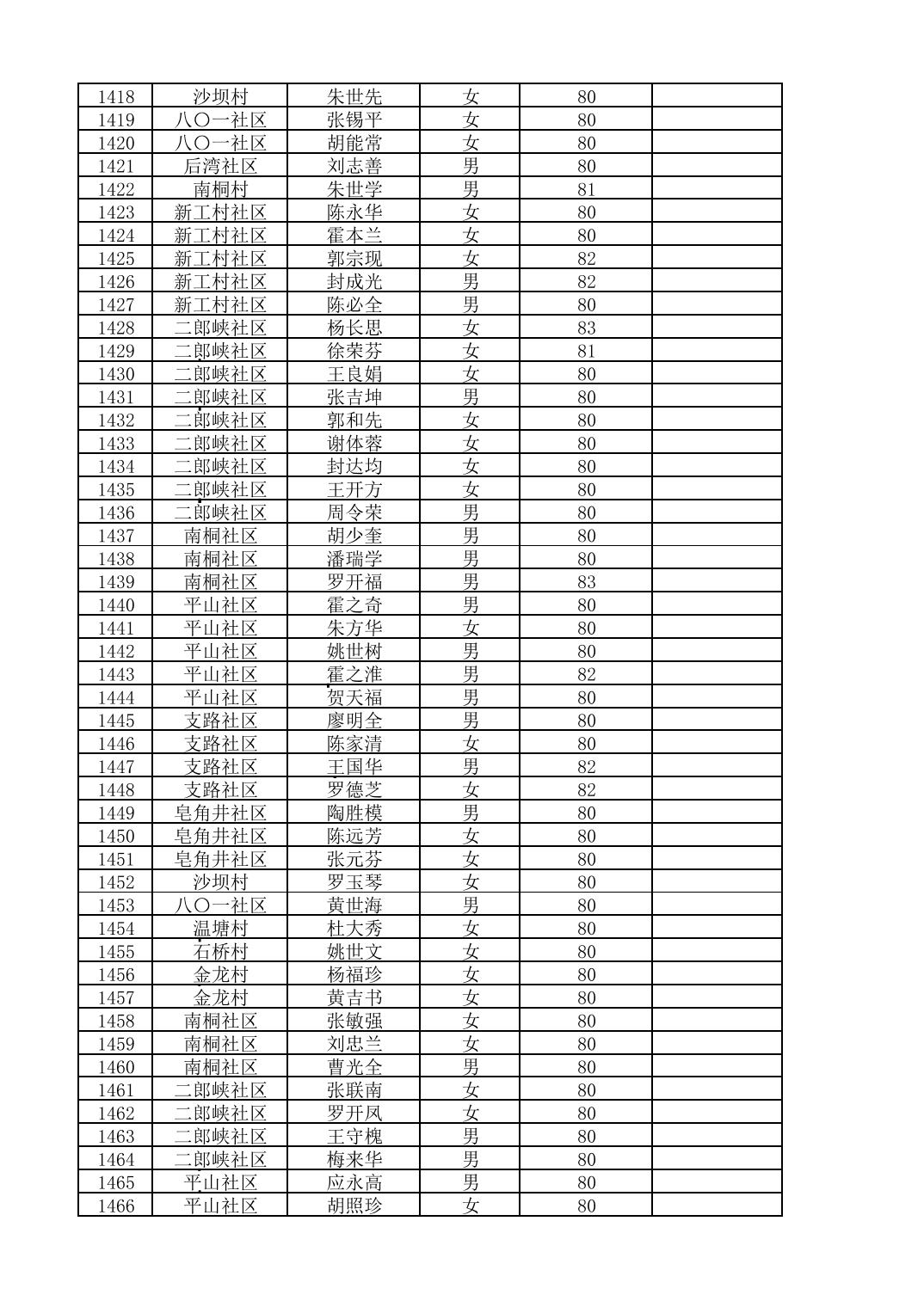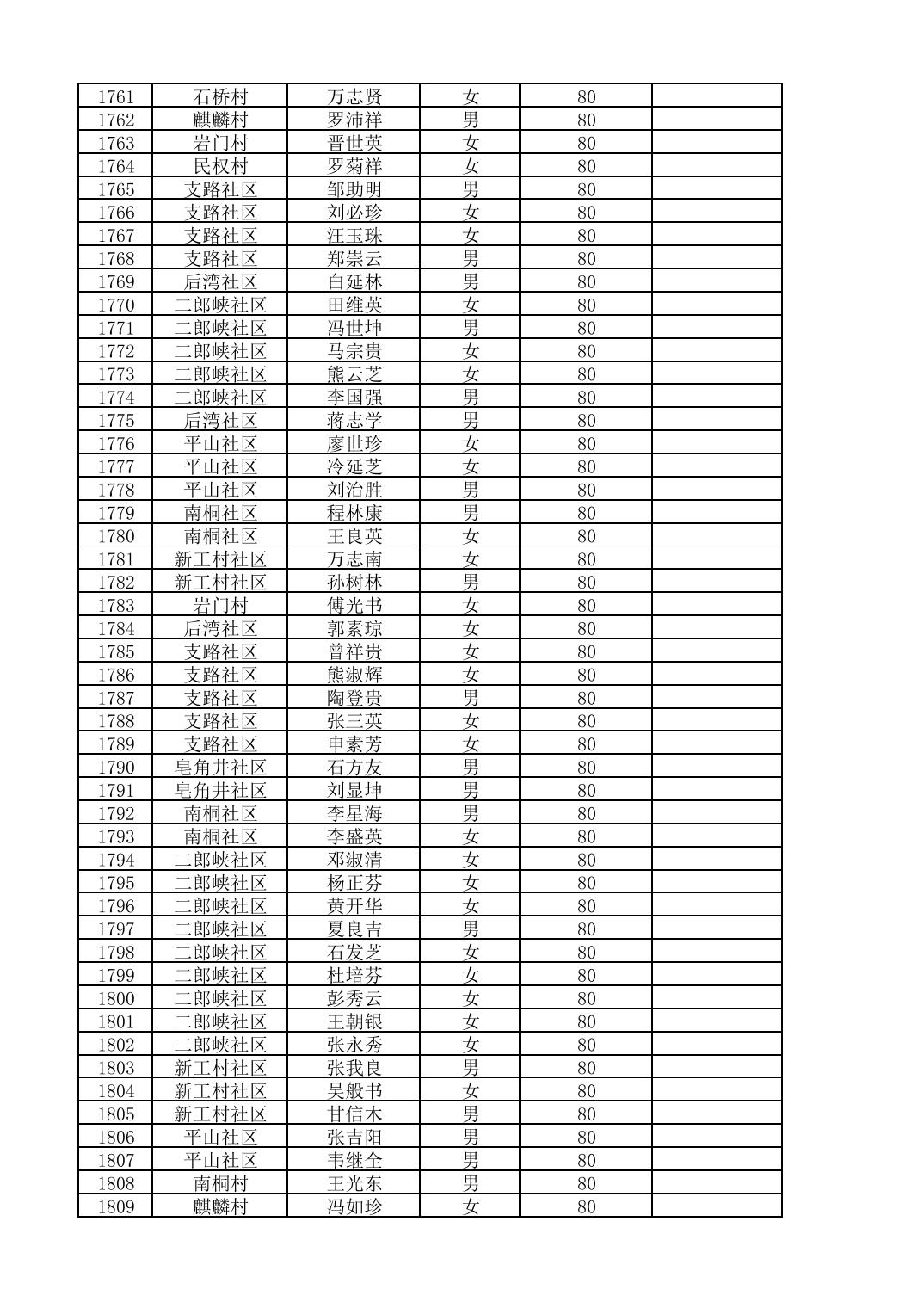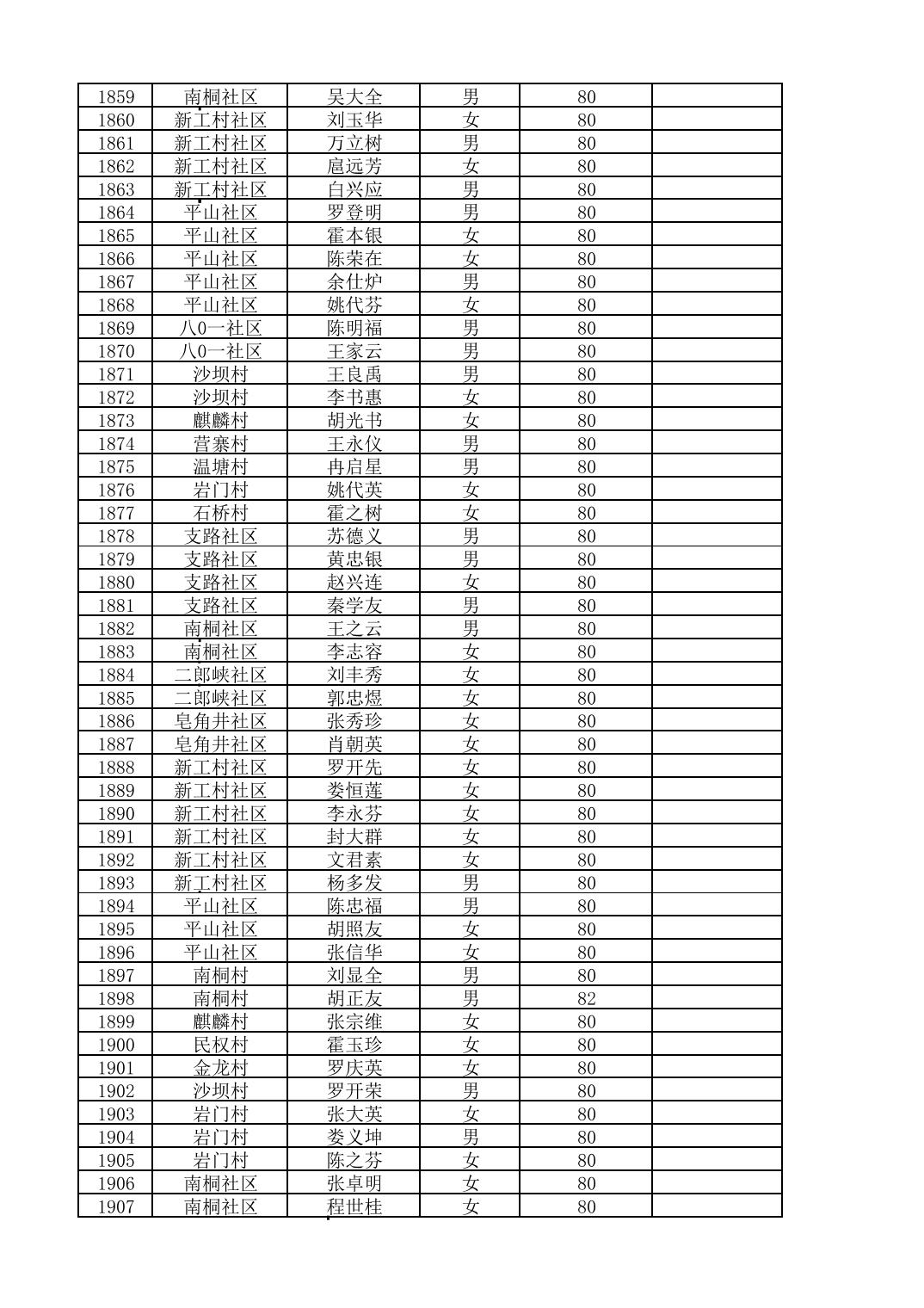 南桐镇2026年4月城乡享受高龄老人营养补贴待遇人员公示名单