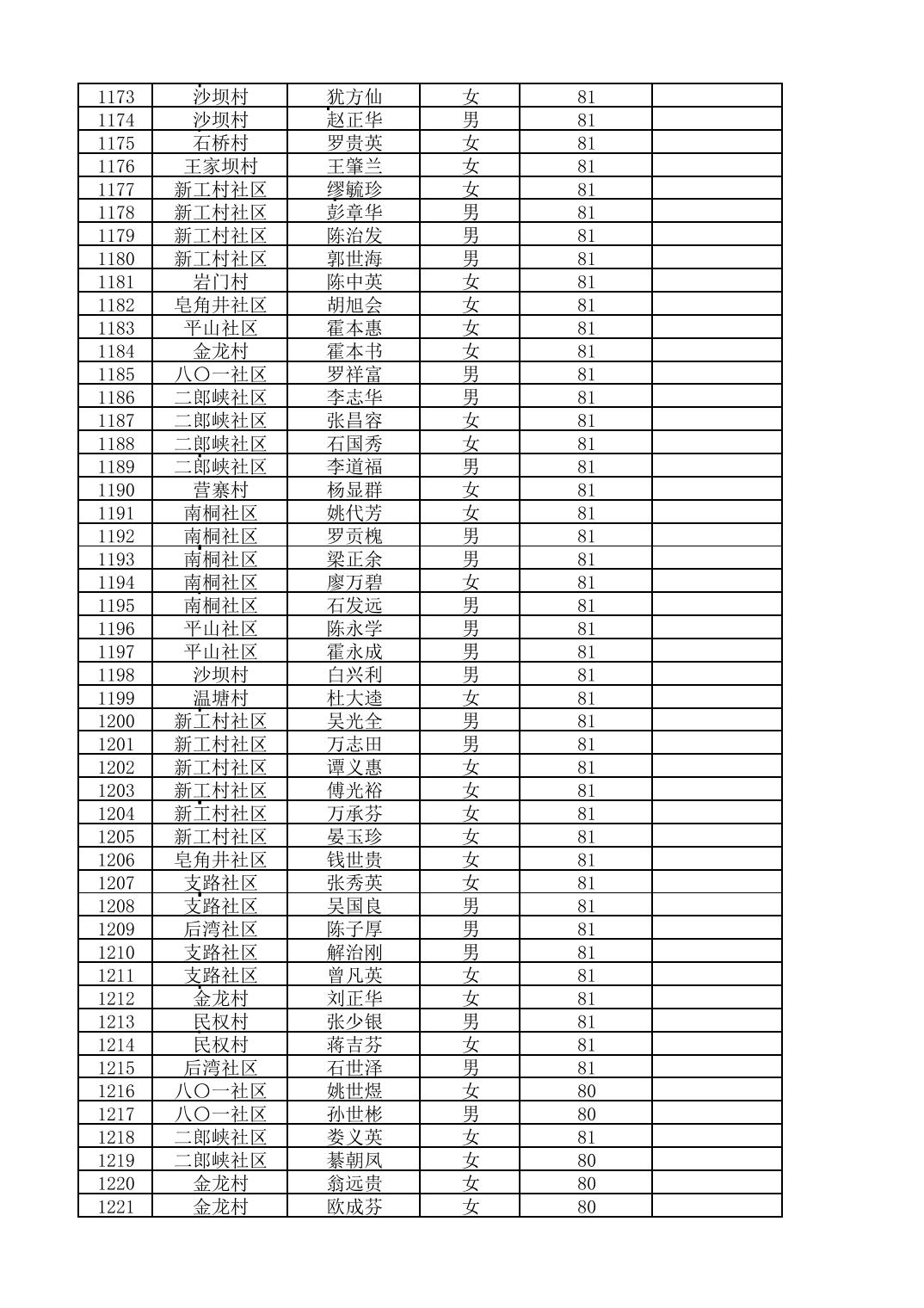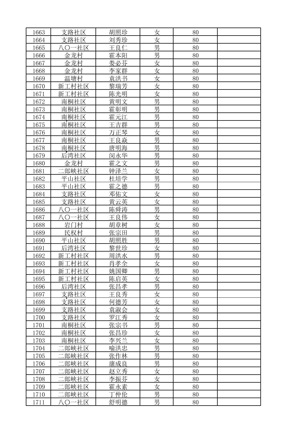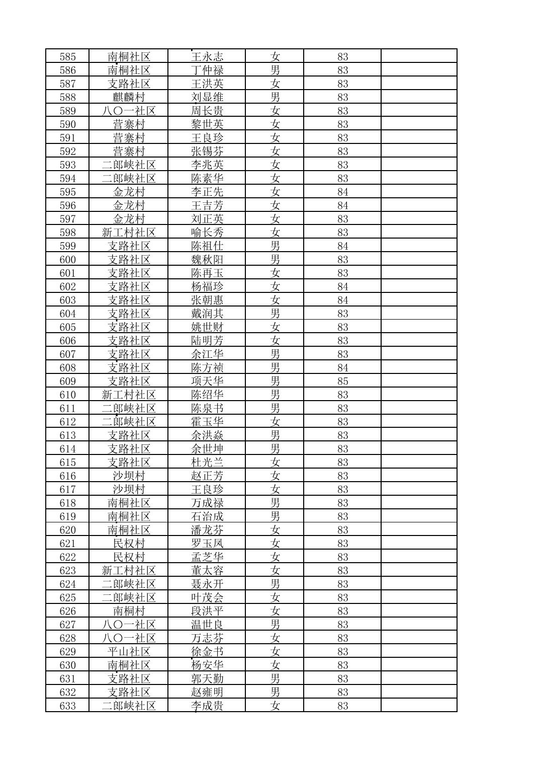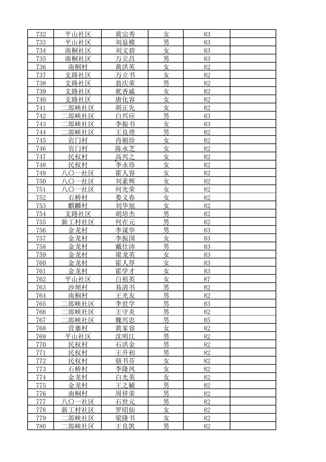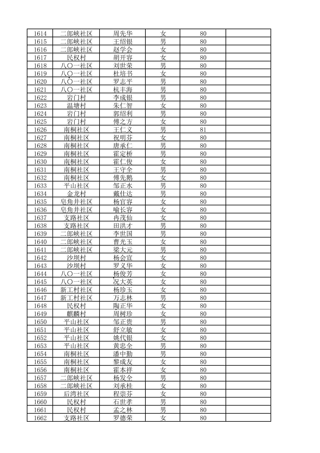 南桐镇2026年4月城乡享受高龄老人营养补贴待遇人员公示名单