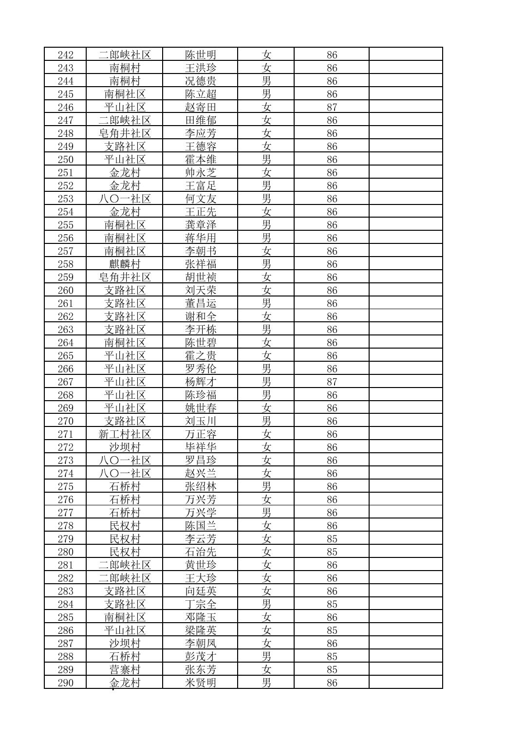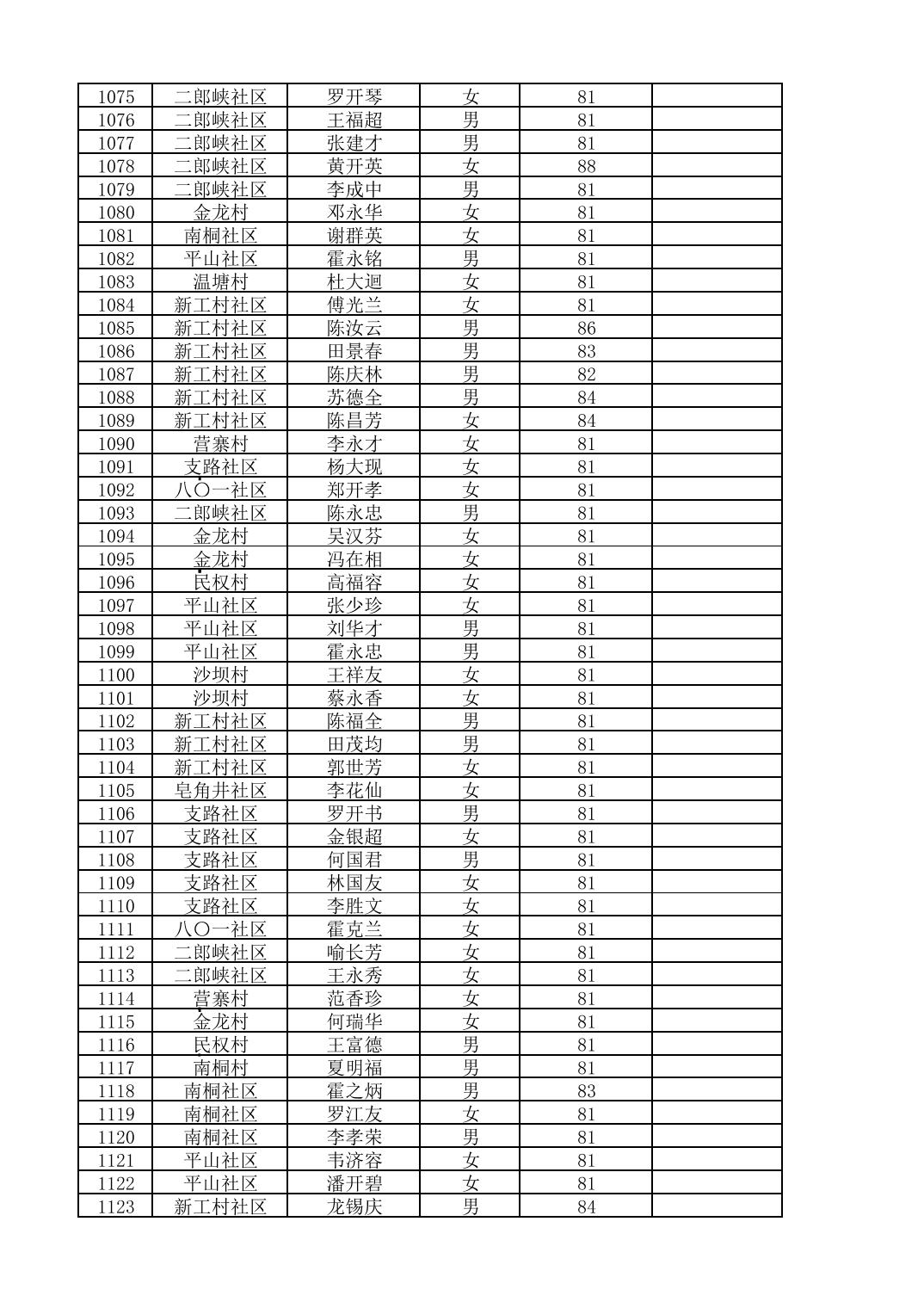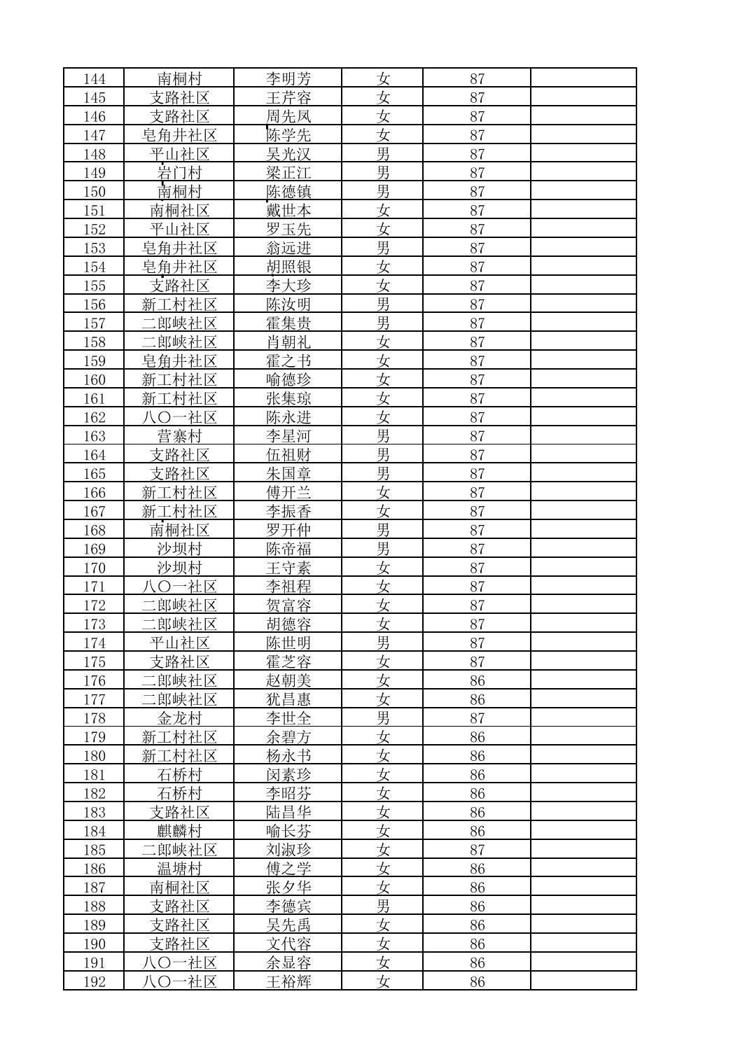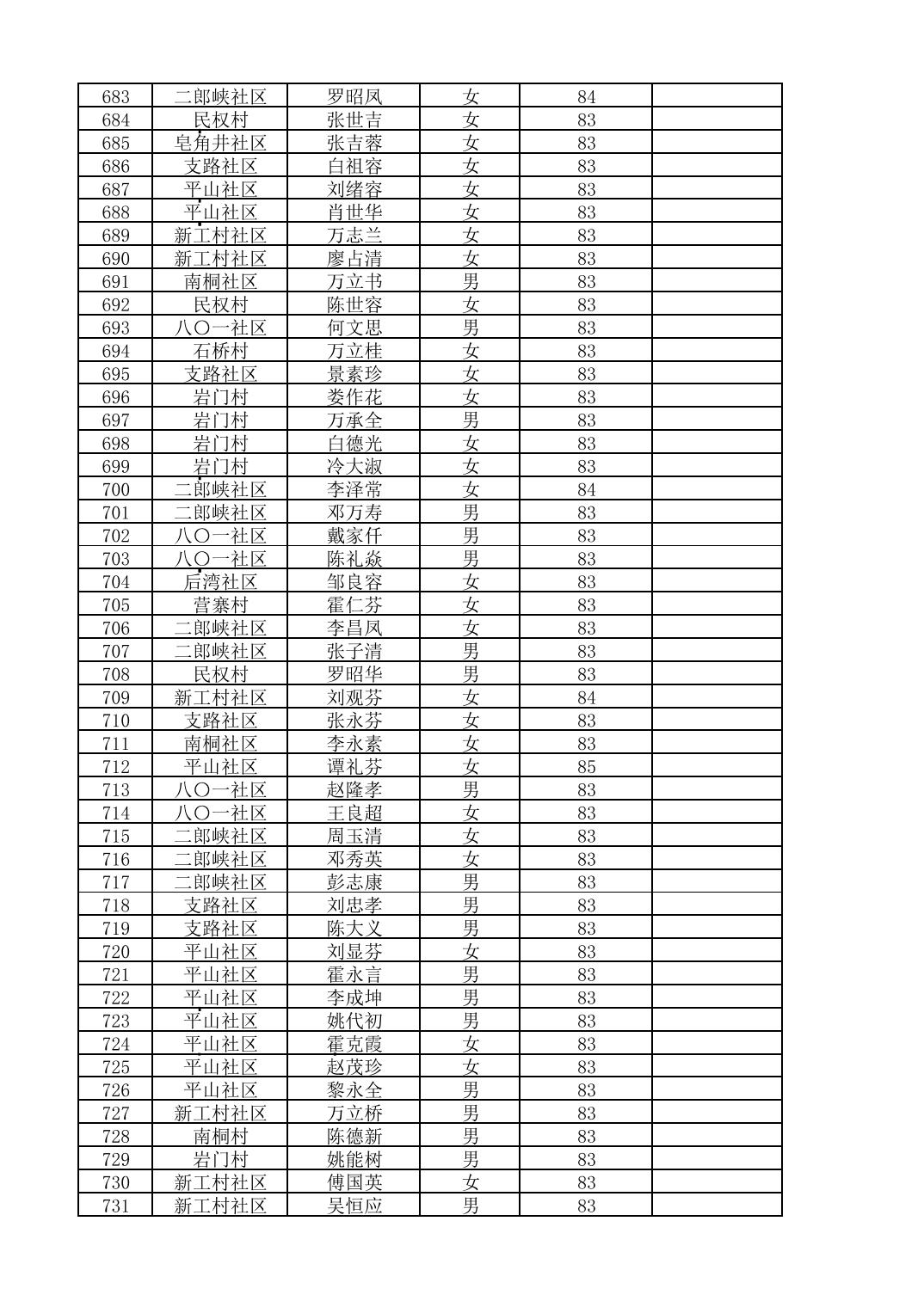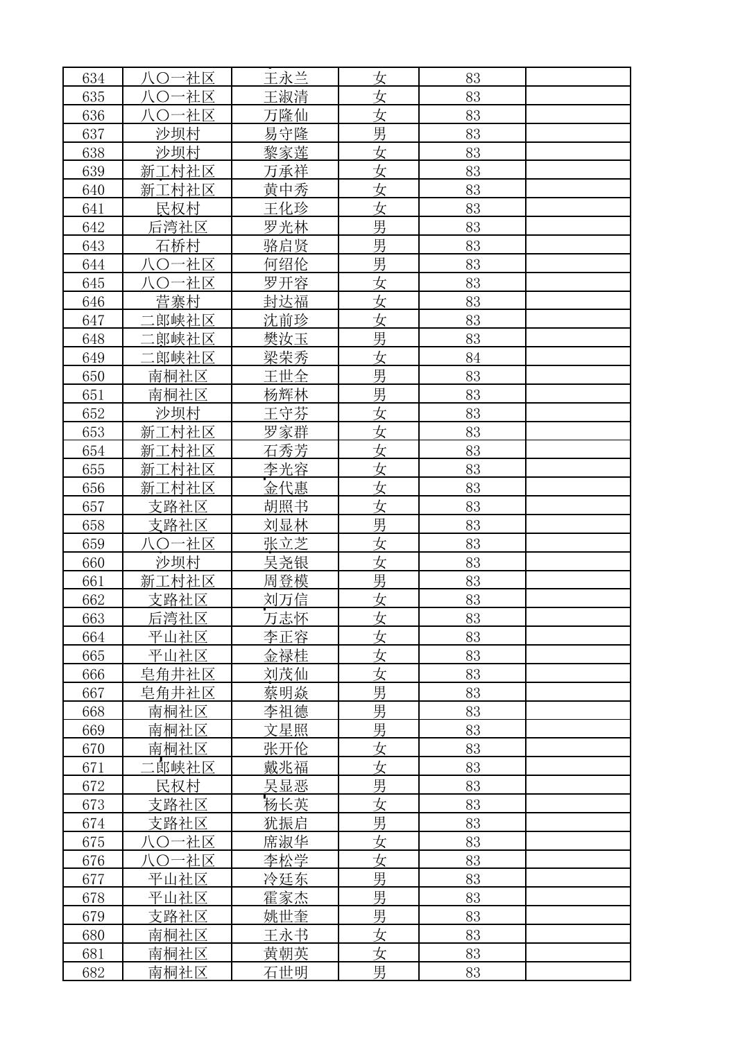南桐镇2026年4月城乡享受高龄老人营养补贴待遇人员公示名单