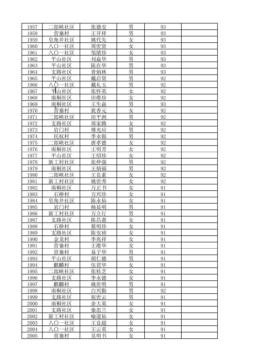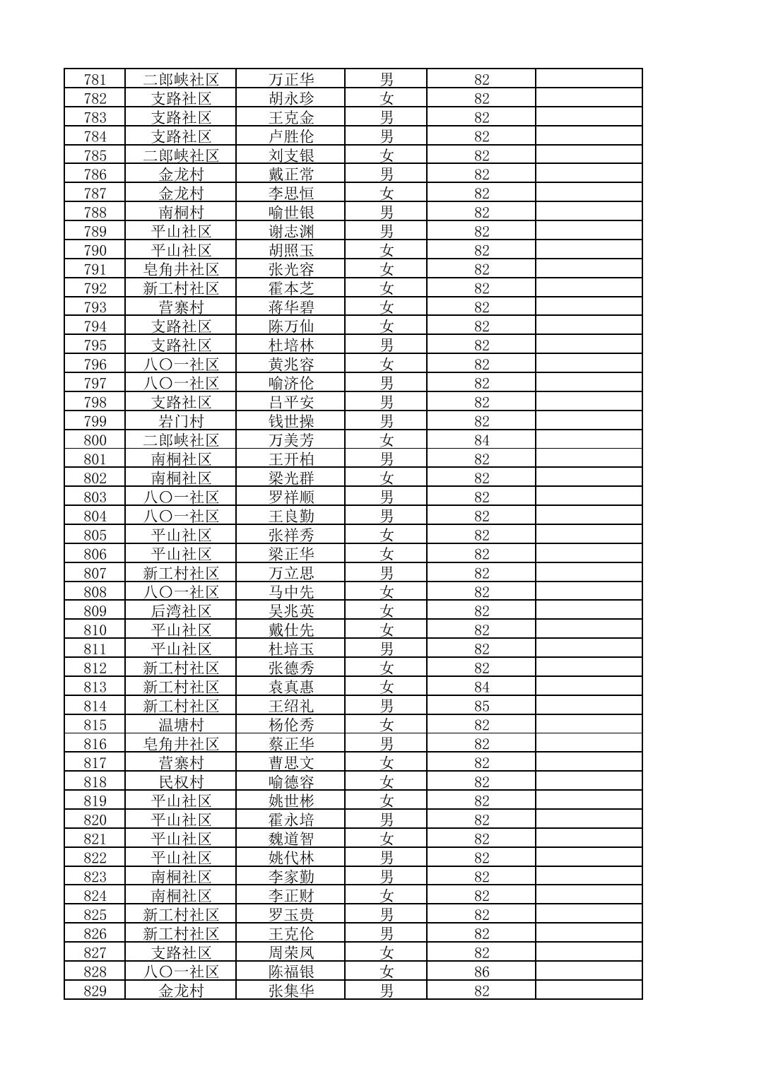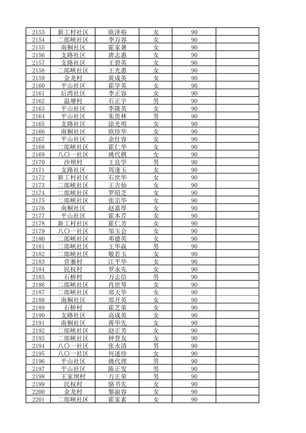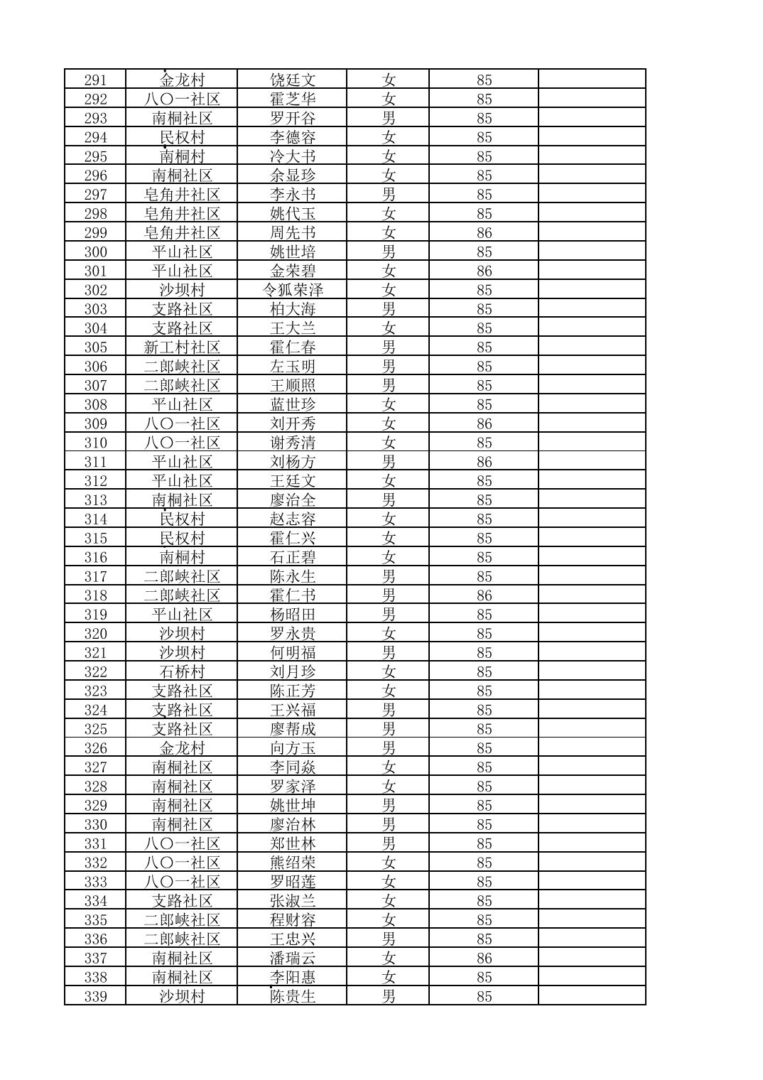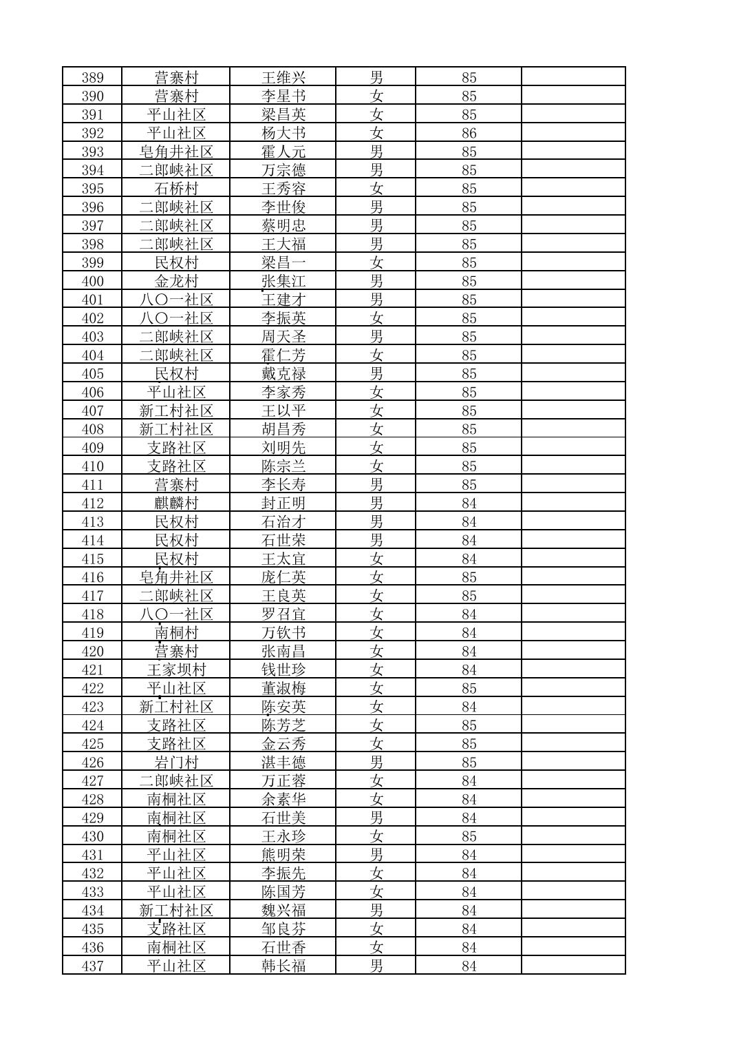 南桐镇2026年4月城乡享受高龄老人营养补贴待遇人员公示名单