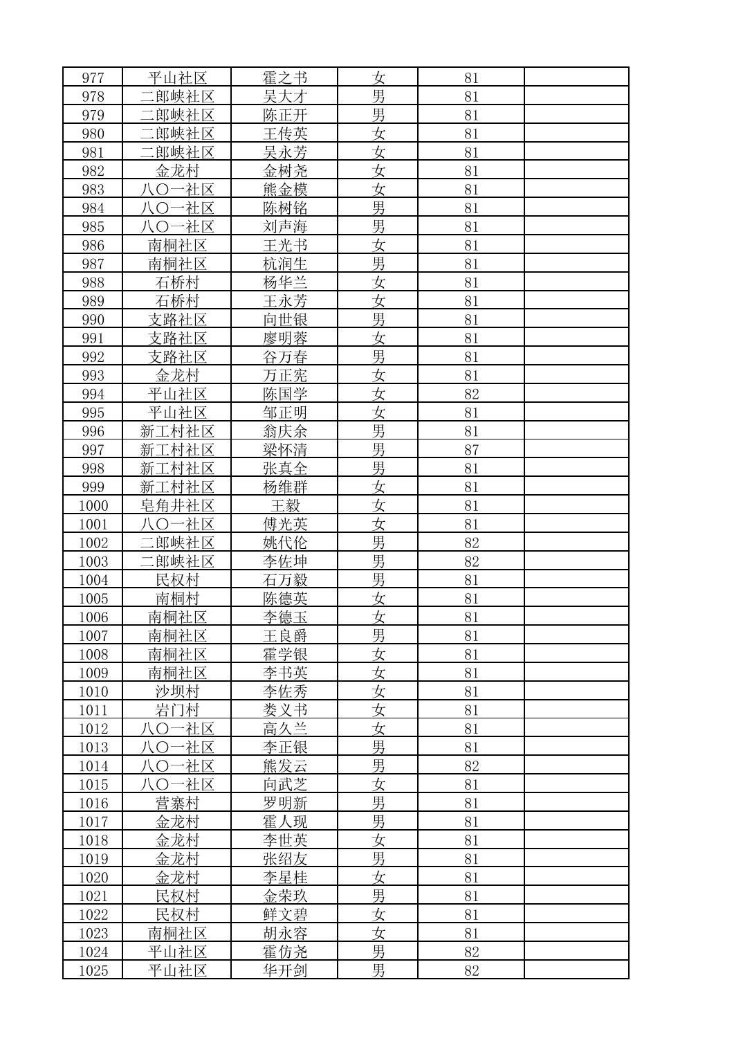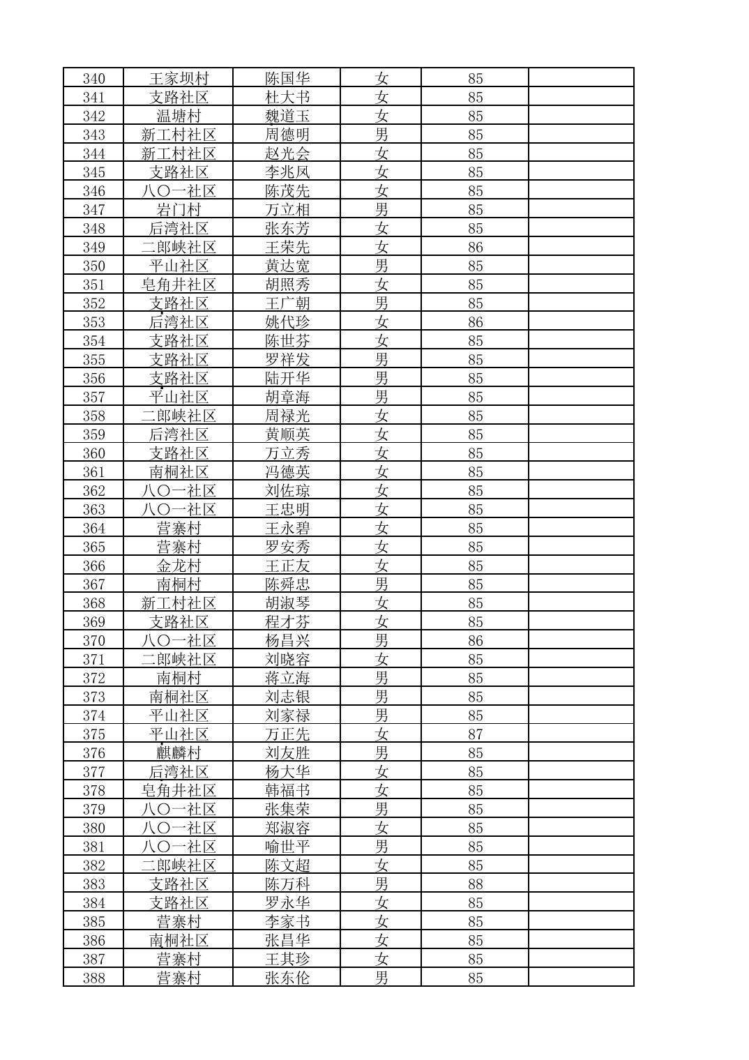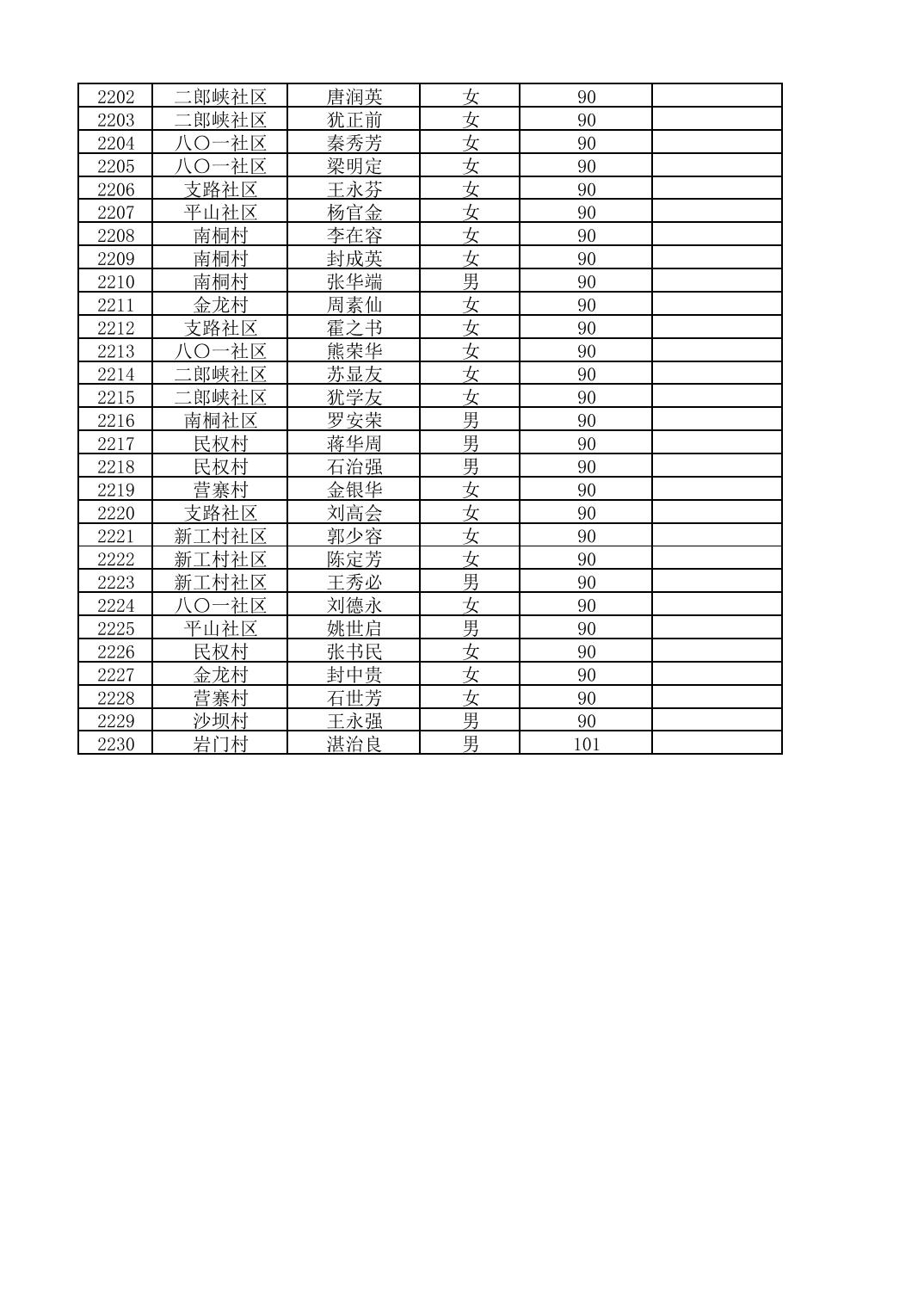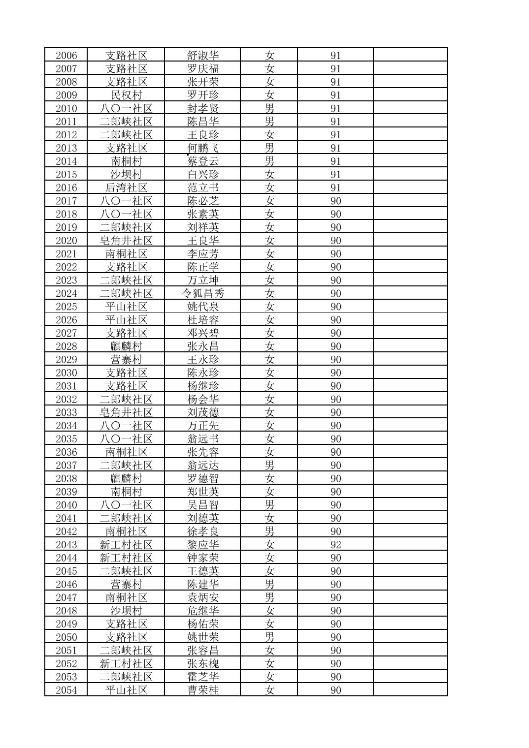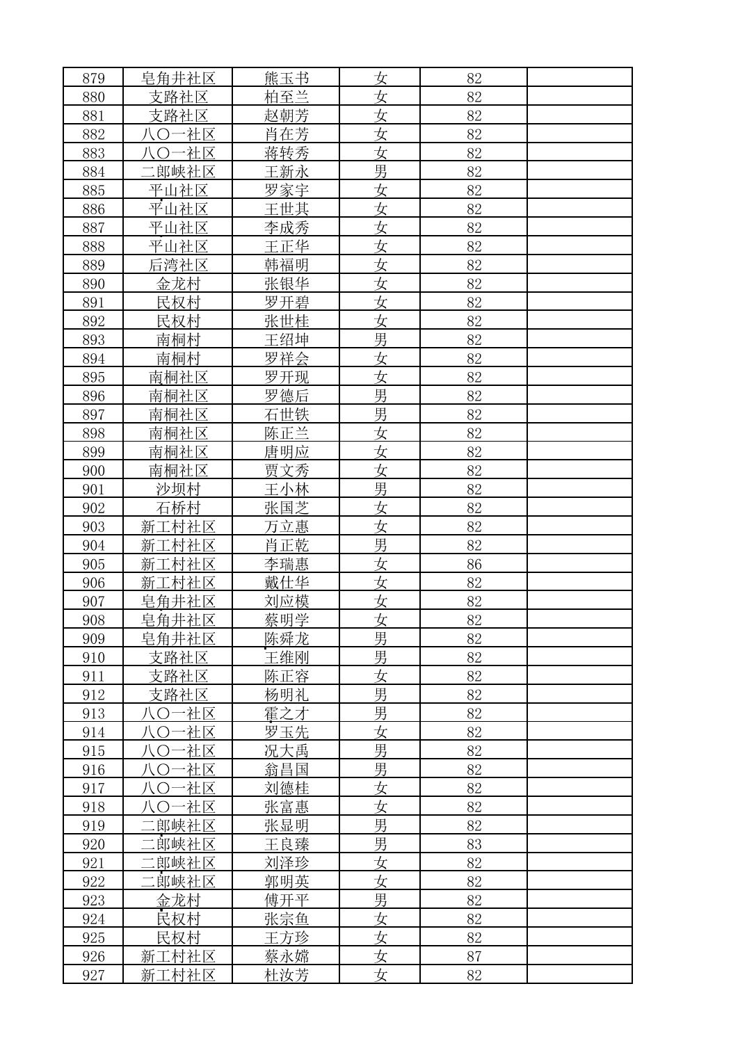 南桐镇2026年4月城乡享受高龄老人营养补贴待遇人员公示名单
