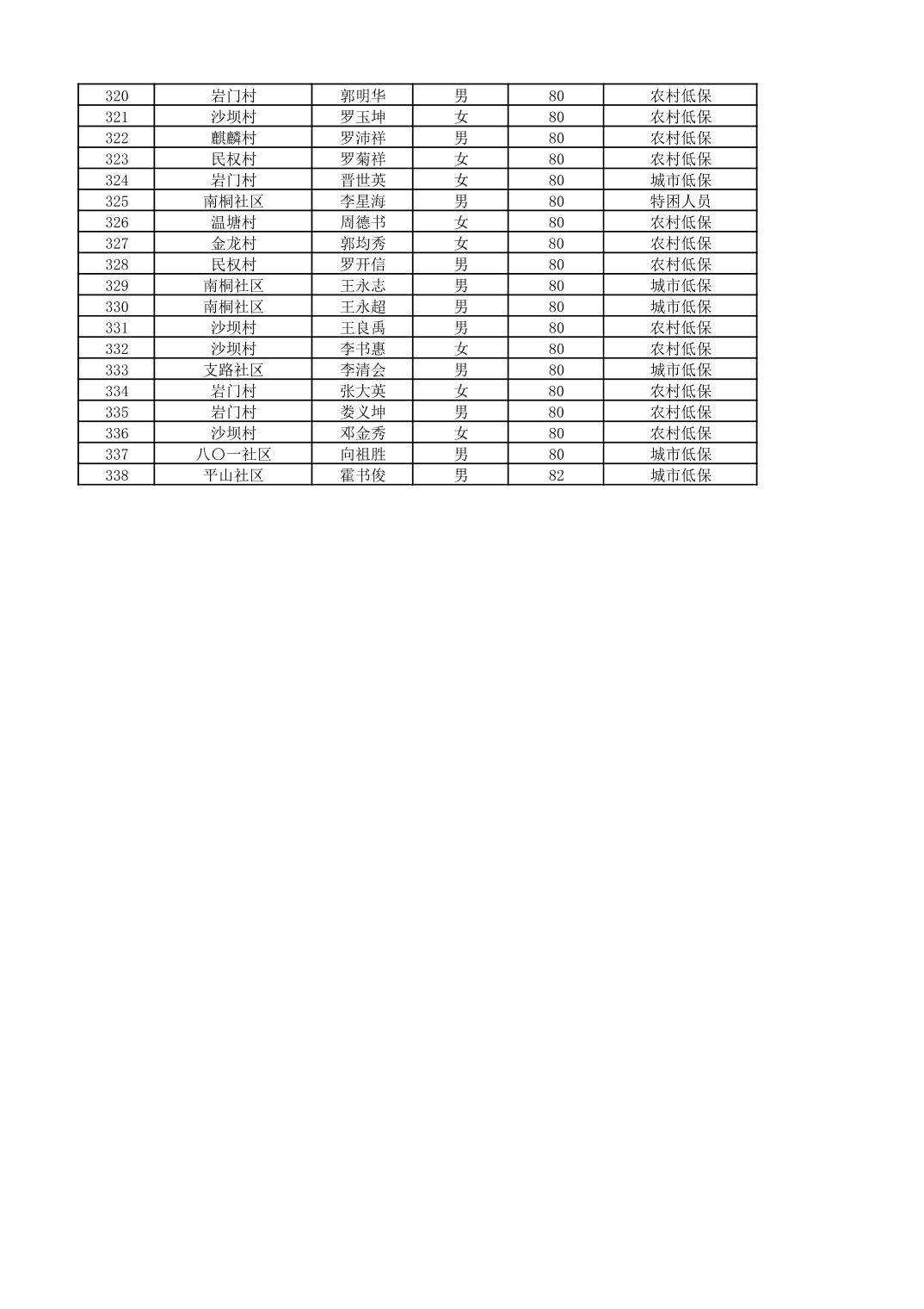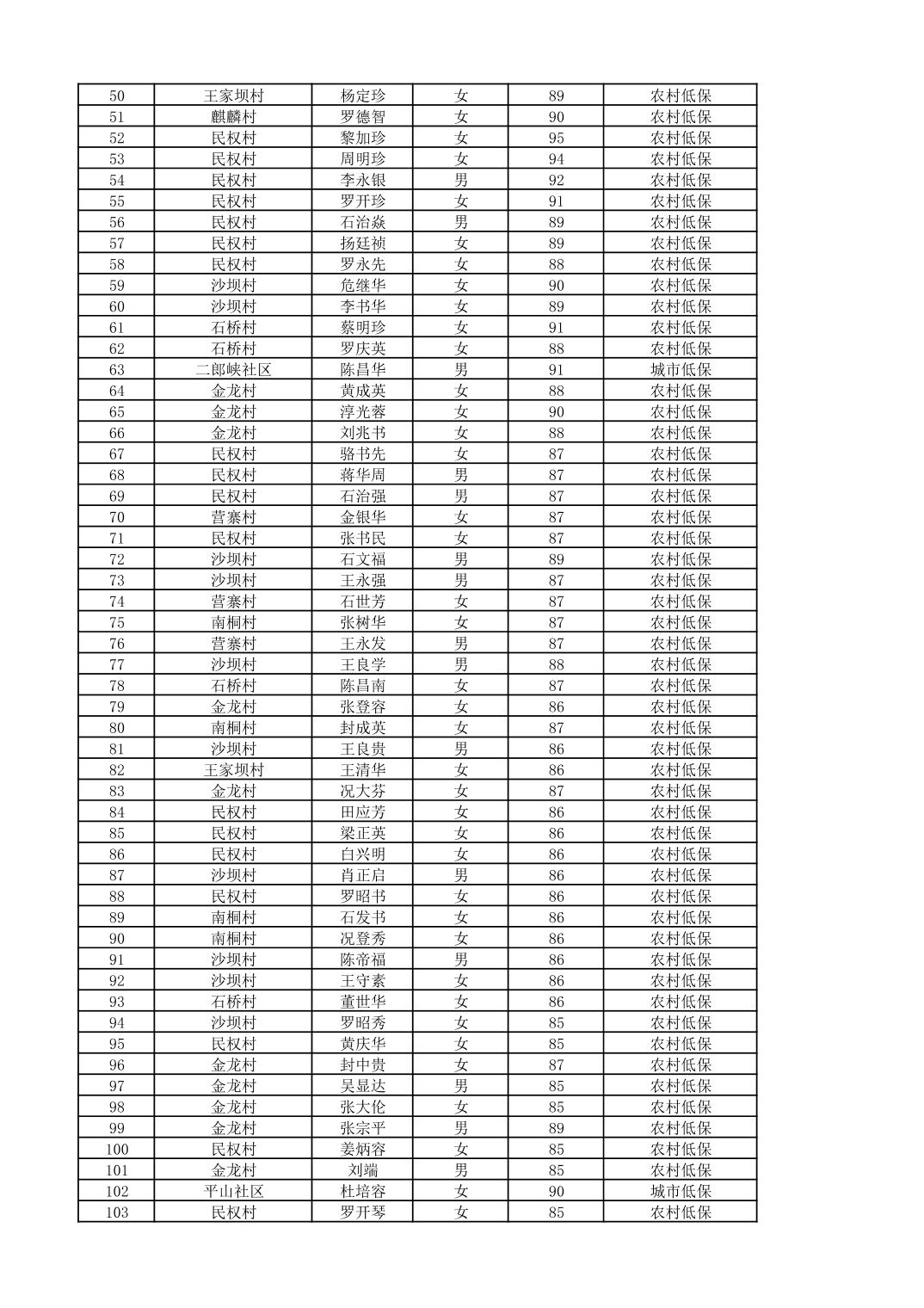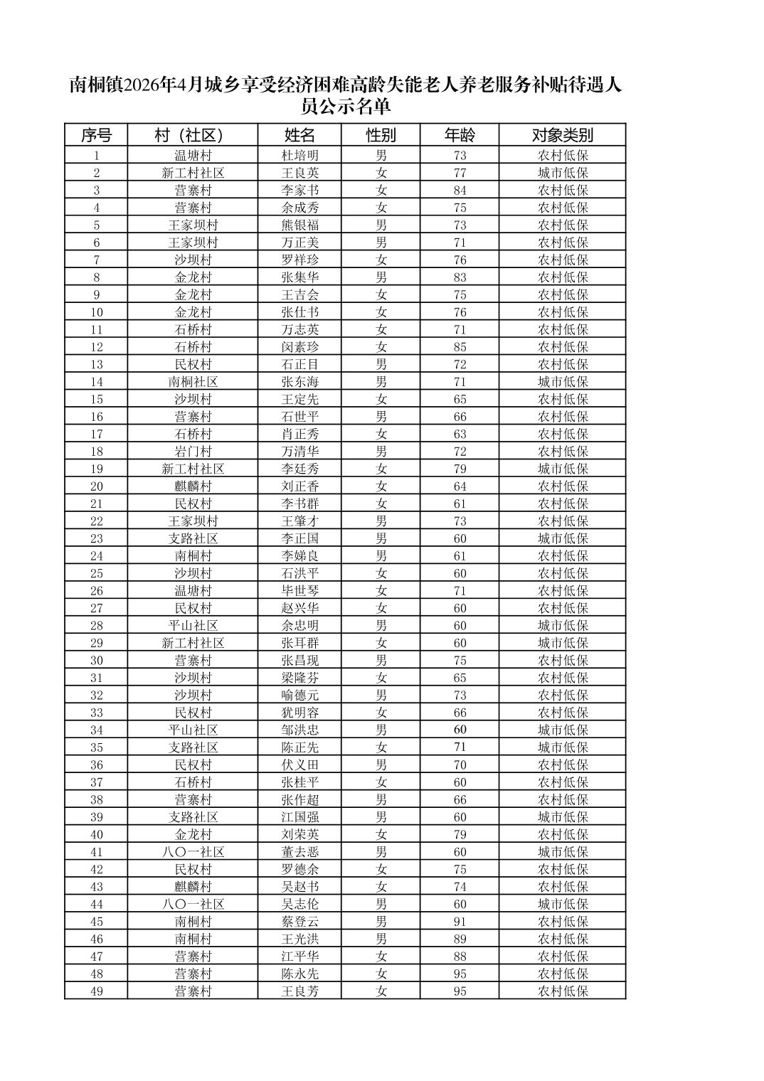 南桐镇2026年4月城乡享受经济困难高龄失能老人养老服务补贴待遇人员公示名单