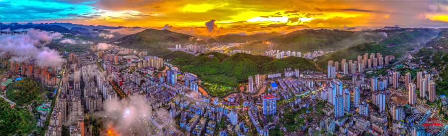 8月7日,雨后的万盛,高楼、山川、夕阳相映成趣,美不胜收。