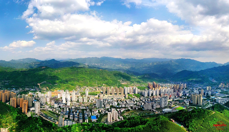 近日,俯瞰万盛城区,湛蓝的天空被朵朵白云点缀着,青山环抱中,高楼林立,城市熠熠生辉。
