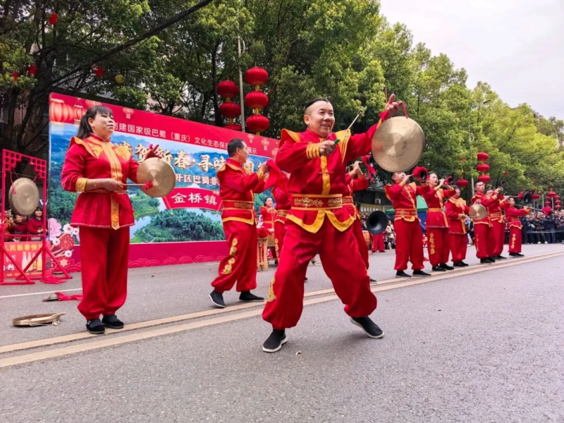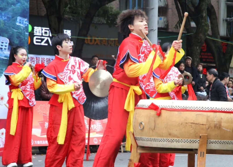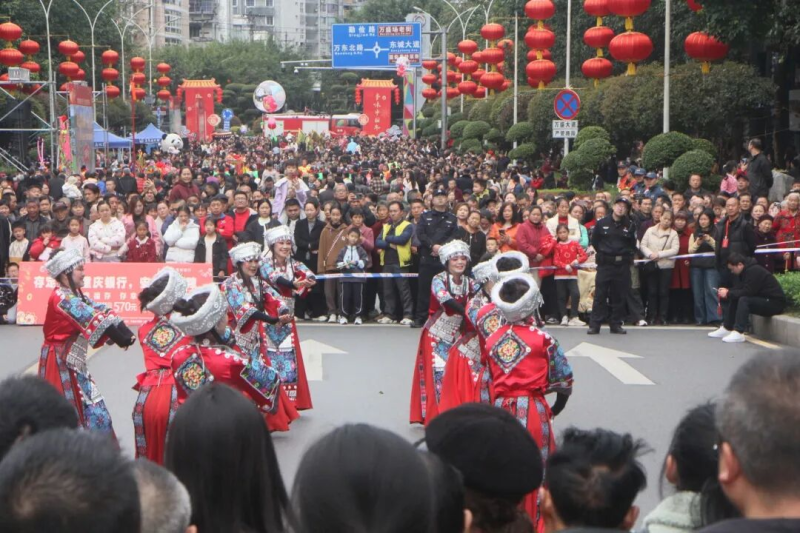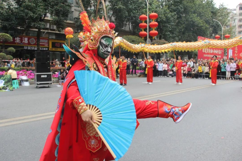 气势恢宏的舞龙舞狮、铿锵悦耳的金桥吹打、独具特色的苗族歌舞、声势浩大的威风锣鼓、百看不厌的川剧变脸……当天下午,万盛大道锣鼓喧天,人山人海,巴蜀非遗民俗大展演活动在这里火热上演。