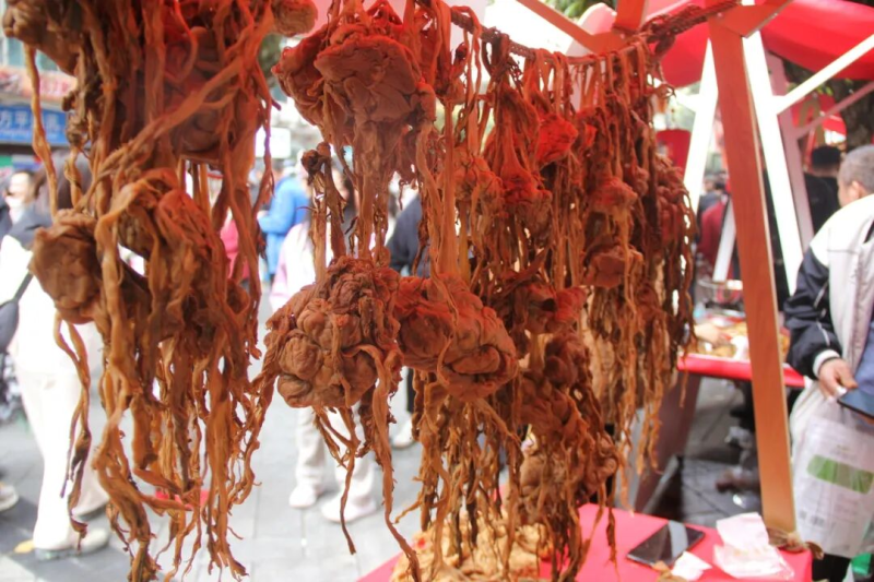 金桥盐菜、关坝雪梨膏、苏氏凉糕等非遗美食摊位前