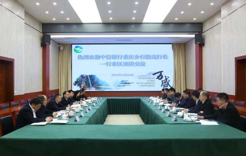 座谈会上,戴明、方磊代表党工委、管委会对殷亮一行来区深化合作表示欢迎,感谢中信银行重庆分行长期以来对万盛经济社会发展的大力支持。戴明说,近年来,中信银行重庆分行始终坚持与地方经济社会发展同频共振,用有力的金融支持为万盛发展注入了动力活力。当前,万盛正深入学习贯彻党的二十届四中全会和中央经济工作会议精神,认真落实市委六届八次全会部署,统筹推进“十四五”冲刺收官、“十五五”谋篇布局,加快构建“231”现代制造业集群,深入实施文旅“三次创业”,扎实推进城乡融合发展,加快打造渝东新城重要增长极、渝南黔北开放新高地。中信银行是全国首家由国有企业发起设立的全国性股份制商业银行,具有全牌照和业务创新等优势。希望中信银行重庆分行与我区在以往良好合作关系的基础上,进一步强化沟通对接,在助力万盛落实国家重大战略,构建现代化产业体系,推进重大基础设施建设,推动城乡融合发展,深化国资国企改革,防范化解金融风险等方面深化务实合作,更好实现互利共赢发展。万盛将持续优化金融生态和营商环境,组建工作专班,为中信银行重庆分行在万盛发展创造良好条件。