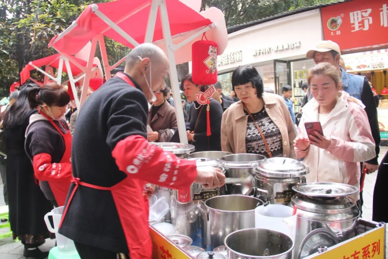 金桥盐菜、关坝雪梨膏、苏氏凉糕等非遗美食摊位前