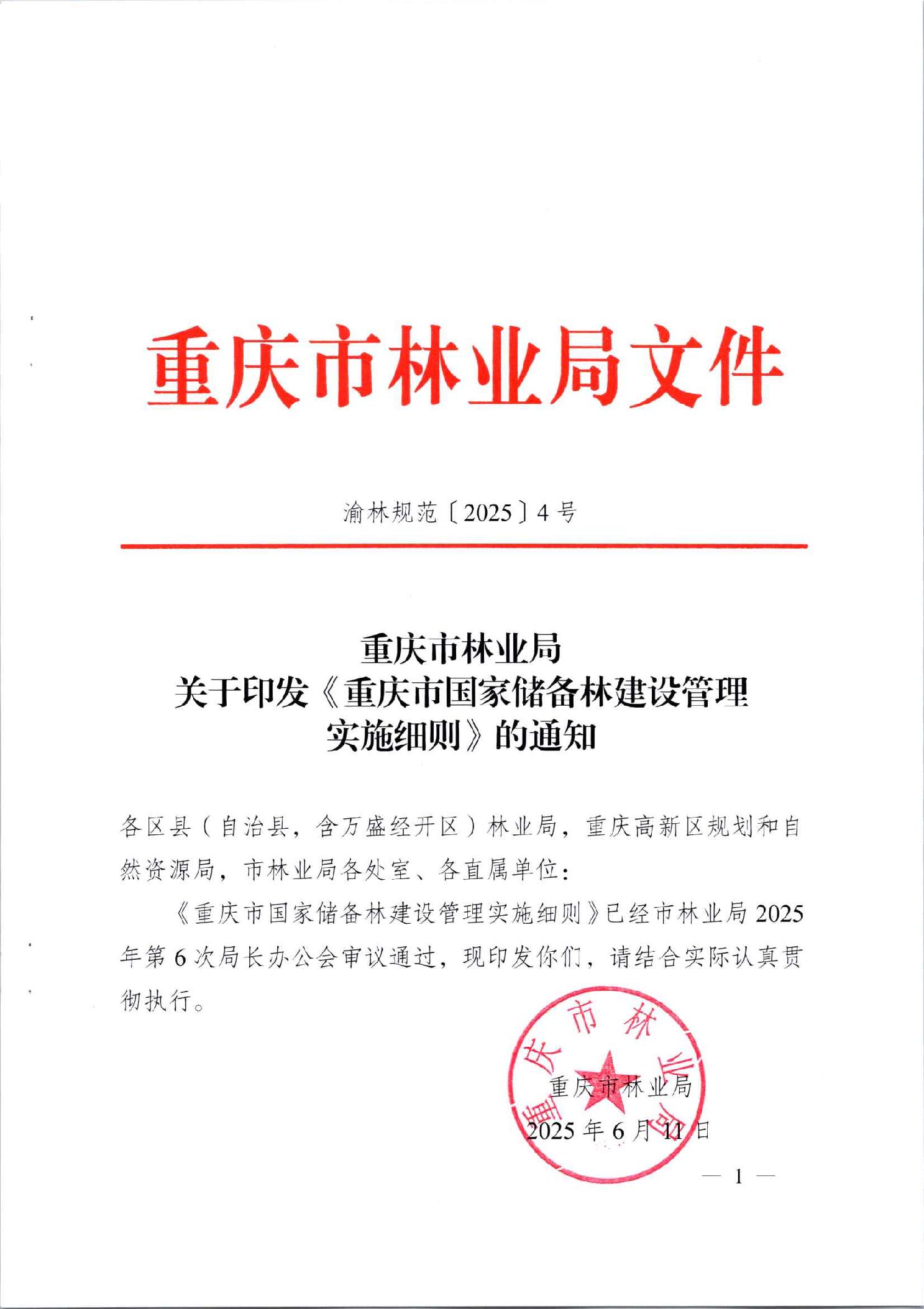 重庆市林业局关于印发《重庆市国家储备林建设管理实施细则》的通知 渝林规范〔2025〕4号