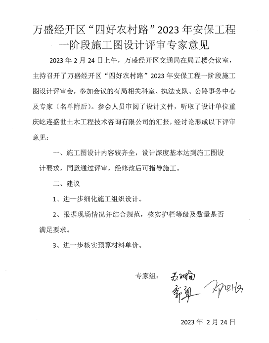 附件:万盛经开区 2023 年农村公路安保工程一阶段施工图设计评审专家意见