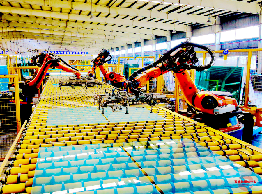 重庆市万盛经济技术开发区大力实施创新驱动发展战略,加快智能装备、大数据、工业机器人等技术应用,提升企业智能制造发展水平,助推经济高质量发展。图为在万盛经济技术开发区一家玻璃生产企业,工业机器人在智能化生产线上作业。