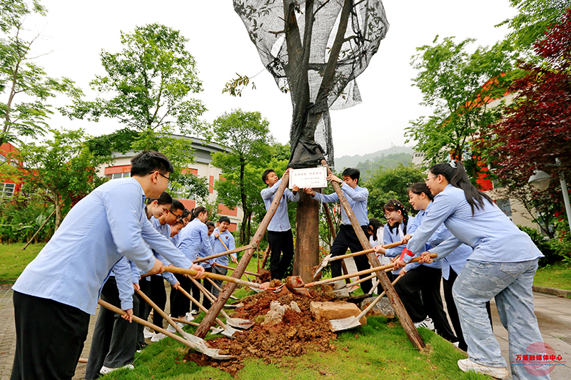学生们合力种下大树,寓意感恩母校、树我栋梁。王泸州 摄