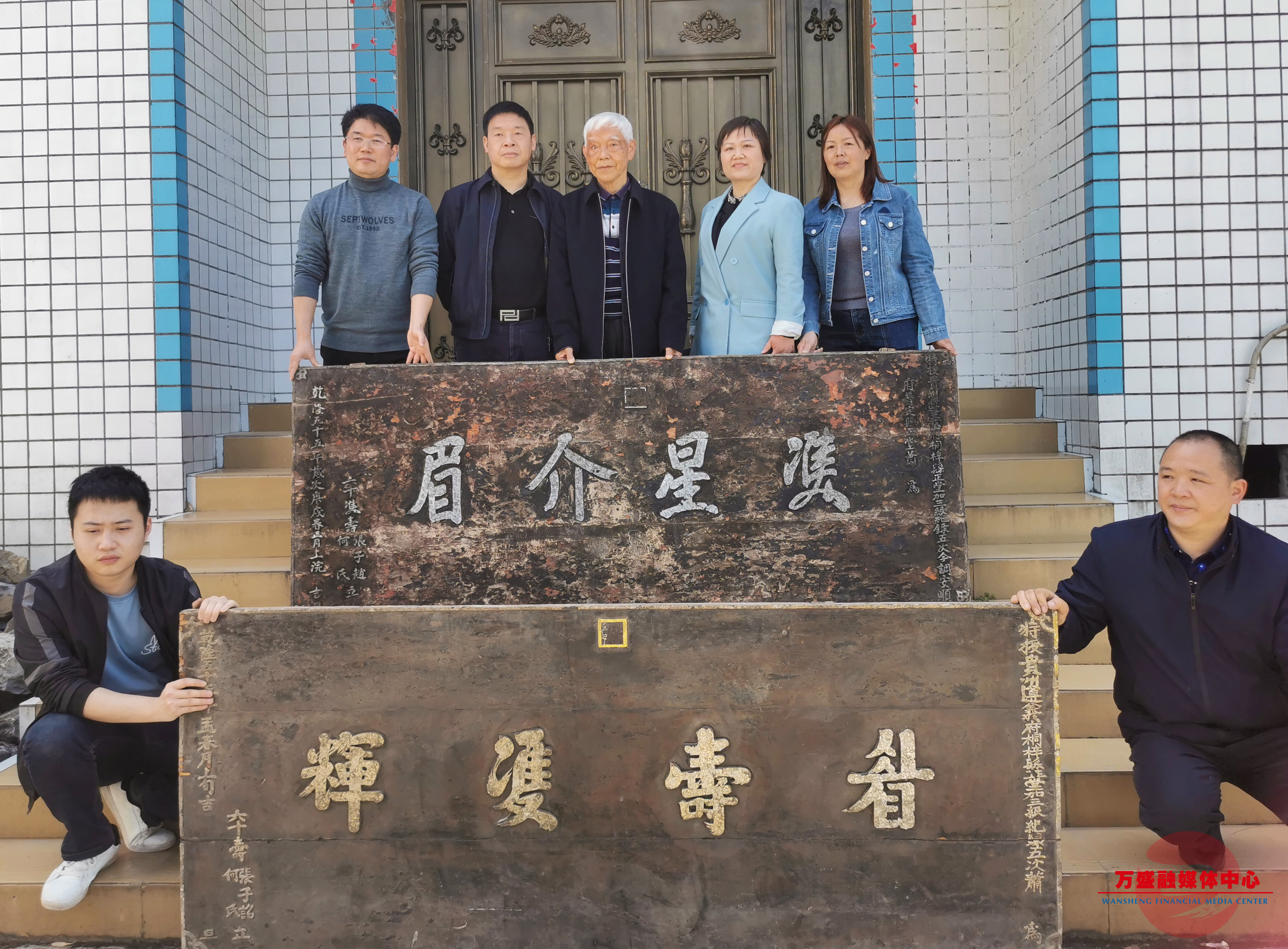据了解,张宗义老人捐赠的这两块木制贴银字匾额,分别题有“双星介眉”和“眉寿双辉”字样,是时任贵州省遵义府桐梓县正堂萧若钦为祝贺张子诏与其妻何氏60岁双寿而立。其中,匾额“双星介眉”的上款刻着“特授贵州遵义府桐梓县正堂加三级记录五次今调安顺府普定县正堂萧为”,下款刻有“乾隆五十五年岁次庚戌春正月上浣”,匾额中部上方为阴刻钤印。