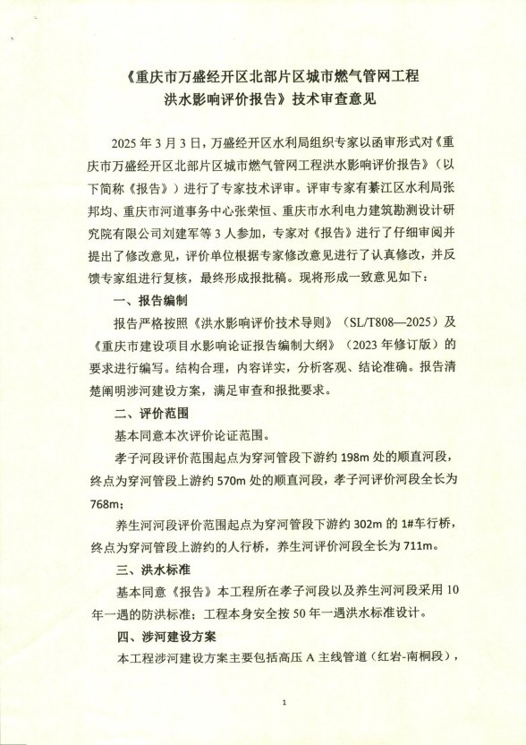 你司委托重庆市远恒工程勘测设计有限公司(以下简称设计单位)编制的《重庆市万盛经开区北部片区城市燃气管网工程洪水影响评价报告》(以下简称《报告》)收悉。我局组织有关专家对《报告》进行了技术审查。现就该工程洪水影响评价作出准予行政许可决定。