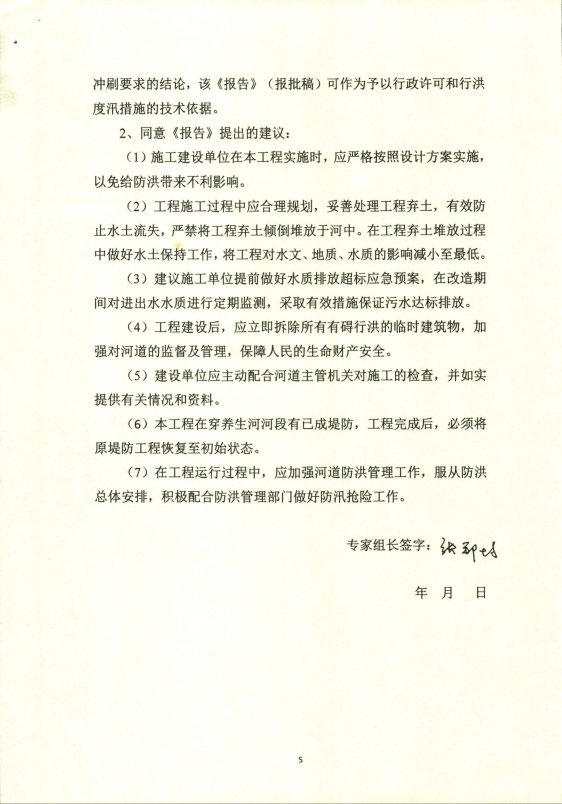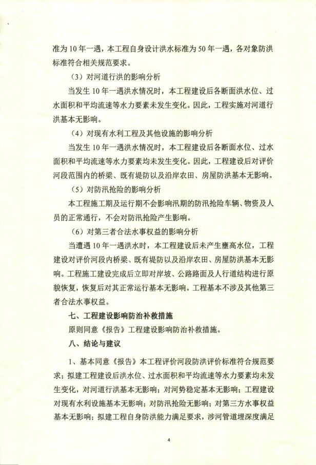 二、原则同意工程建设对河道行洪及河势稳定影响较小的结论。