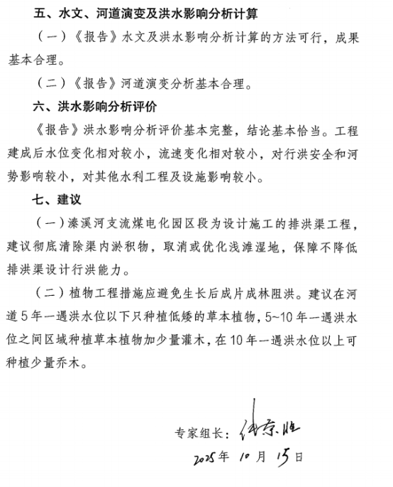 二、原则同意工程建设对河道行洪及河势稳定影响较小的结论。