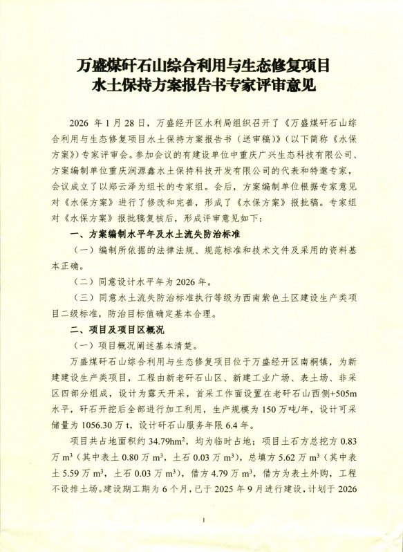 2.万盛煤矸石山综合利用与生态修复项目水土保持方案报告书专家评审意见