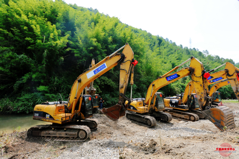 天星水库工程开工仪式结束后,挖掘机挥动铁臂开挖土石方。(王泸州 摄)