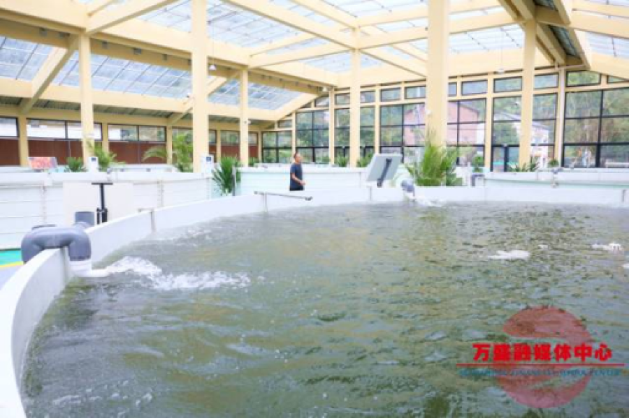 “鱼菜共生”科技养殖示范基地,占地约3000平方米,核心由1个养殖大棚、2个蔬果大棚和2个三级生态净化池组成,构筑起“鱼肥水—菜净水—水养鱼”的生态闭环循环系统。相比传统种植,同面积增产3倍以上,正常投产后,年产量预计超2吨;相比传统鱼塘,产量和收益大幅提升,每口养殖池可养鱼5000—8000斤。该基地作为智慧养殖示范基地,已成为青少年产学研基地,接待学校、社会团体等参观研学。
