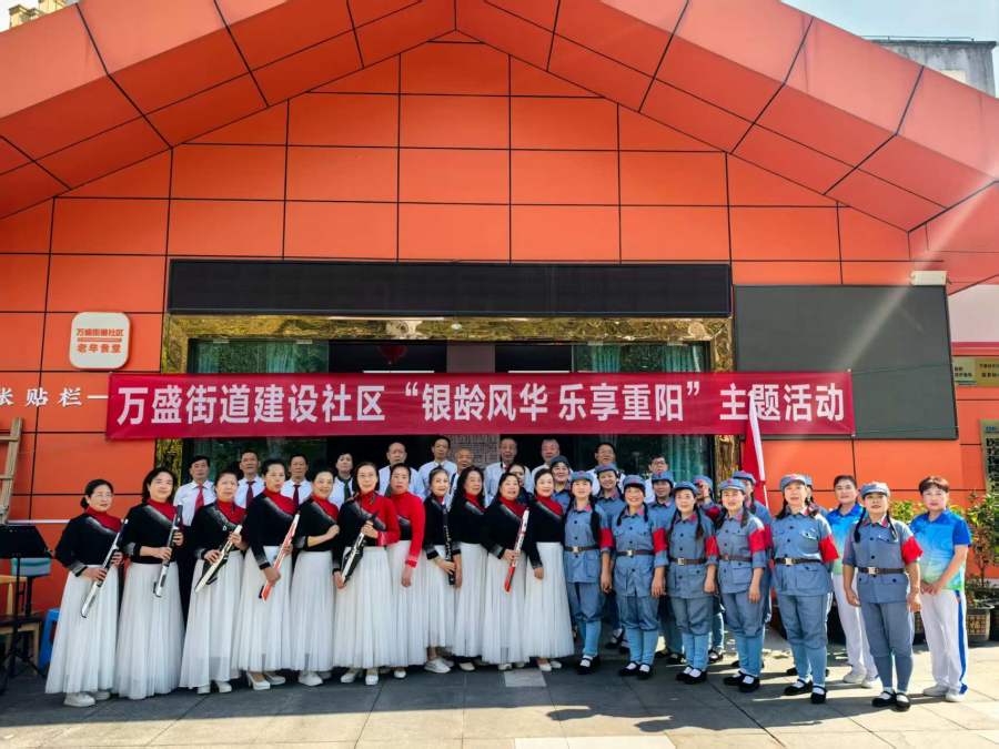 万盛街道建设社区,开展“银龄风华、乐享重阳”主题活动。为辖区老人和群众送上一台赏心悦目的文化演出。