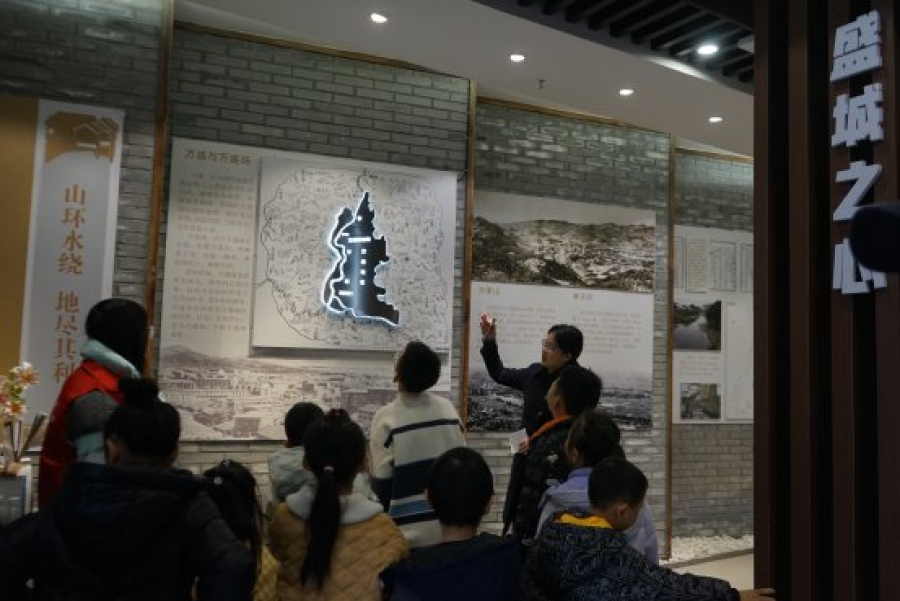 手工环节结束后,青少年们排着整齐的队伍走进老街记忆馆。泛黄的老照片、古朴的旧物件、承载岁月印记的生活器具,瞬间将大家带入往昔时光。社区讲解员结合展品,生动讲述万盛老街的发展变迁、市井风貌与人文故事,从旧时的商铺茶馆到如今的宜居社区,从祖辈的生活日常到当代的幸福生活,让孩子们在沉浸式参观中读懂家乡的历史脉络。