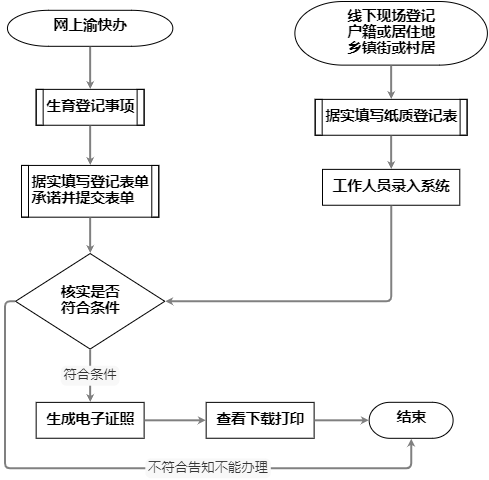 | 申办材料 | 按要求如实填写生育登记表单内容并承诺 |