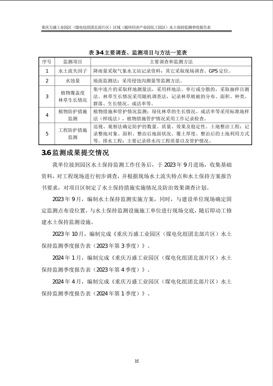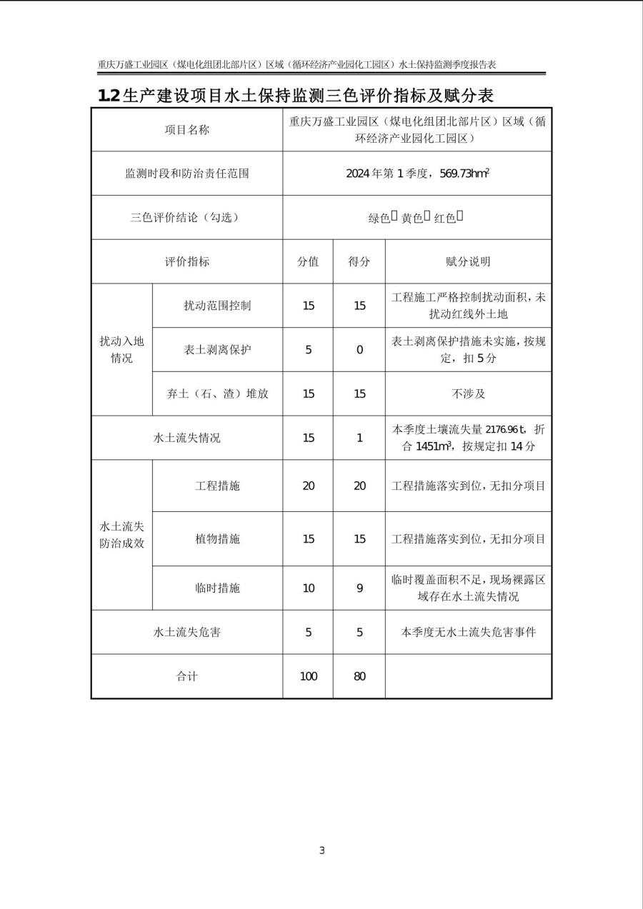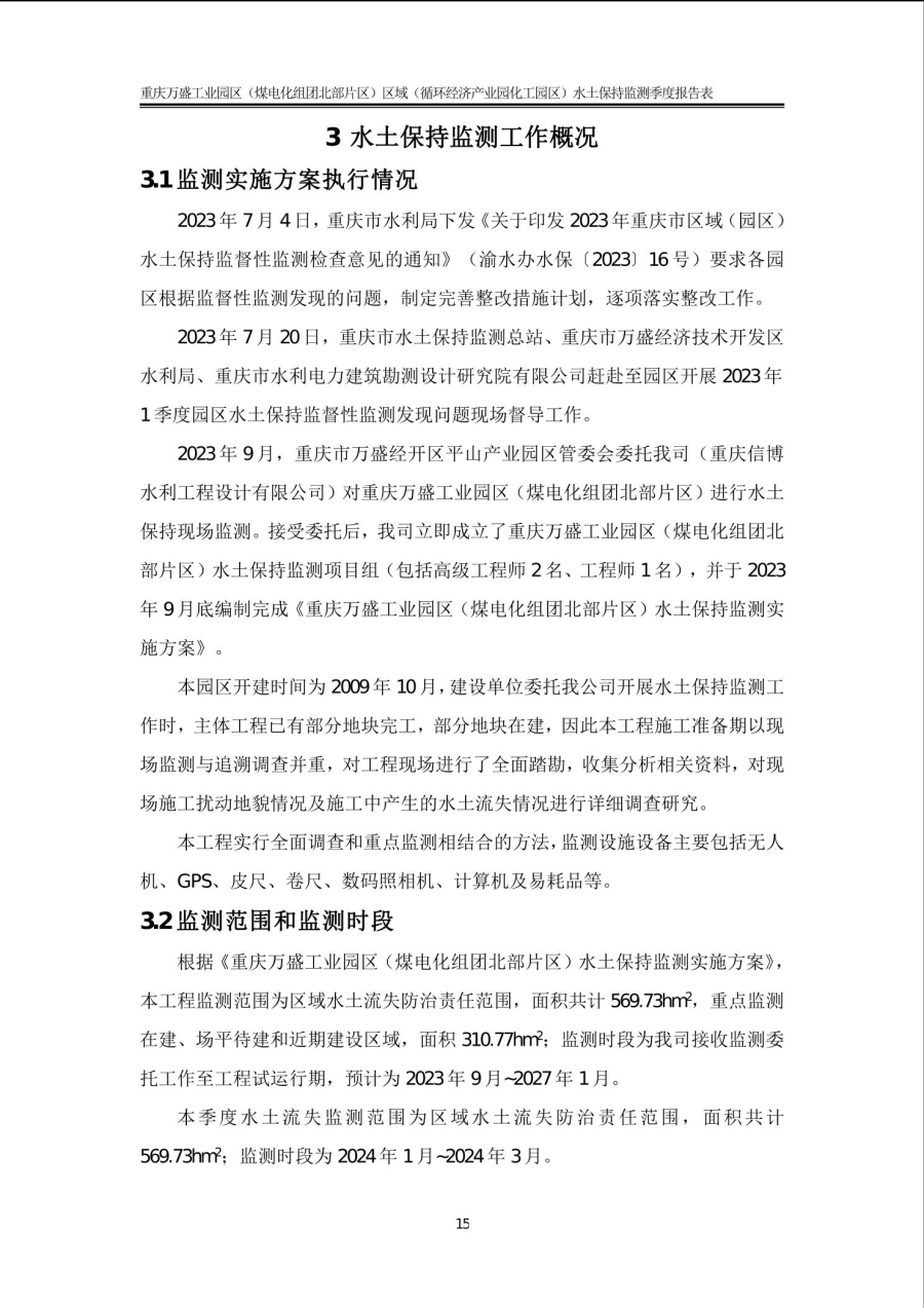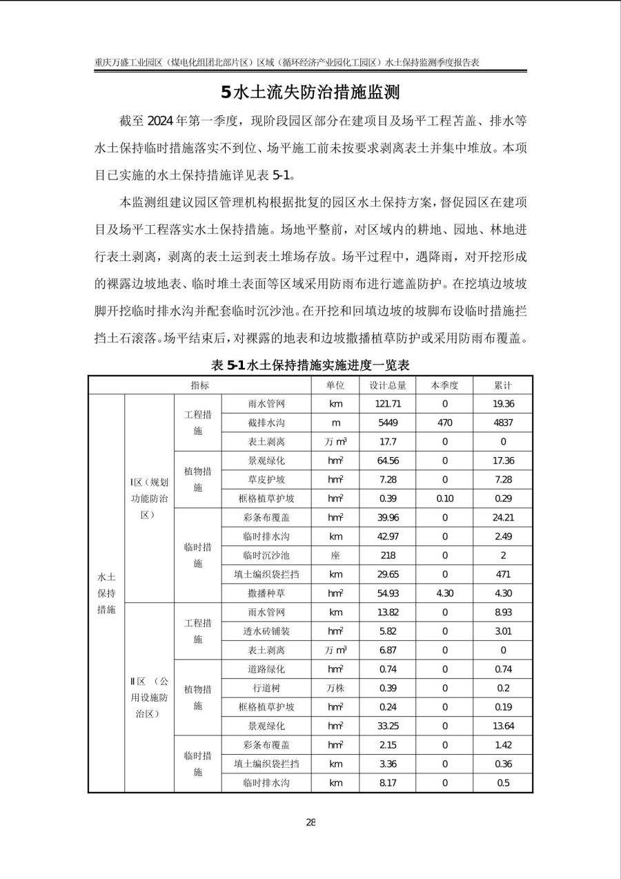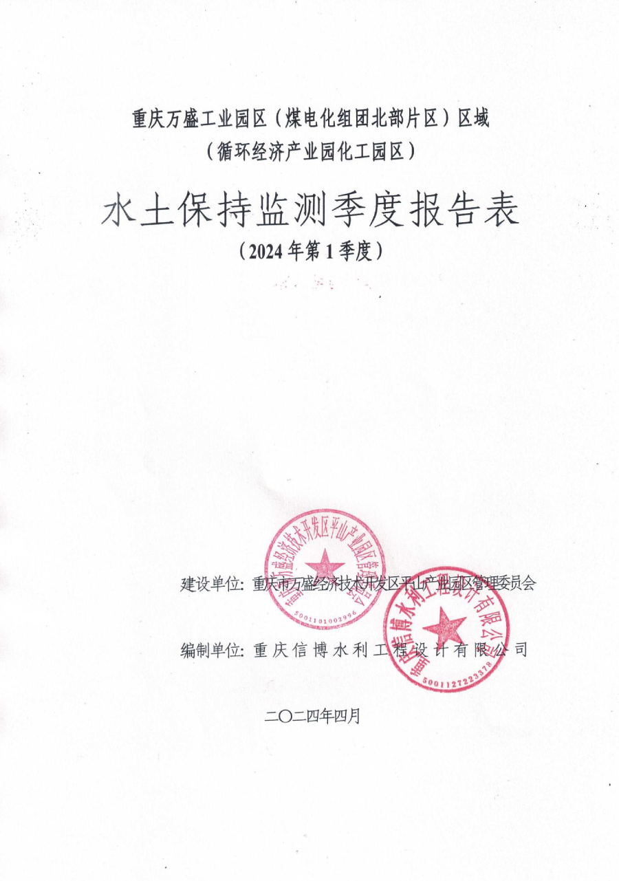重庆万盛工业园区(煤电化组团北部片区)区域水土保持监测季度报告(2024年第1季度)