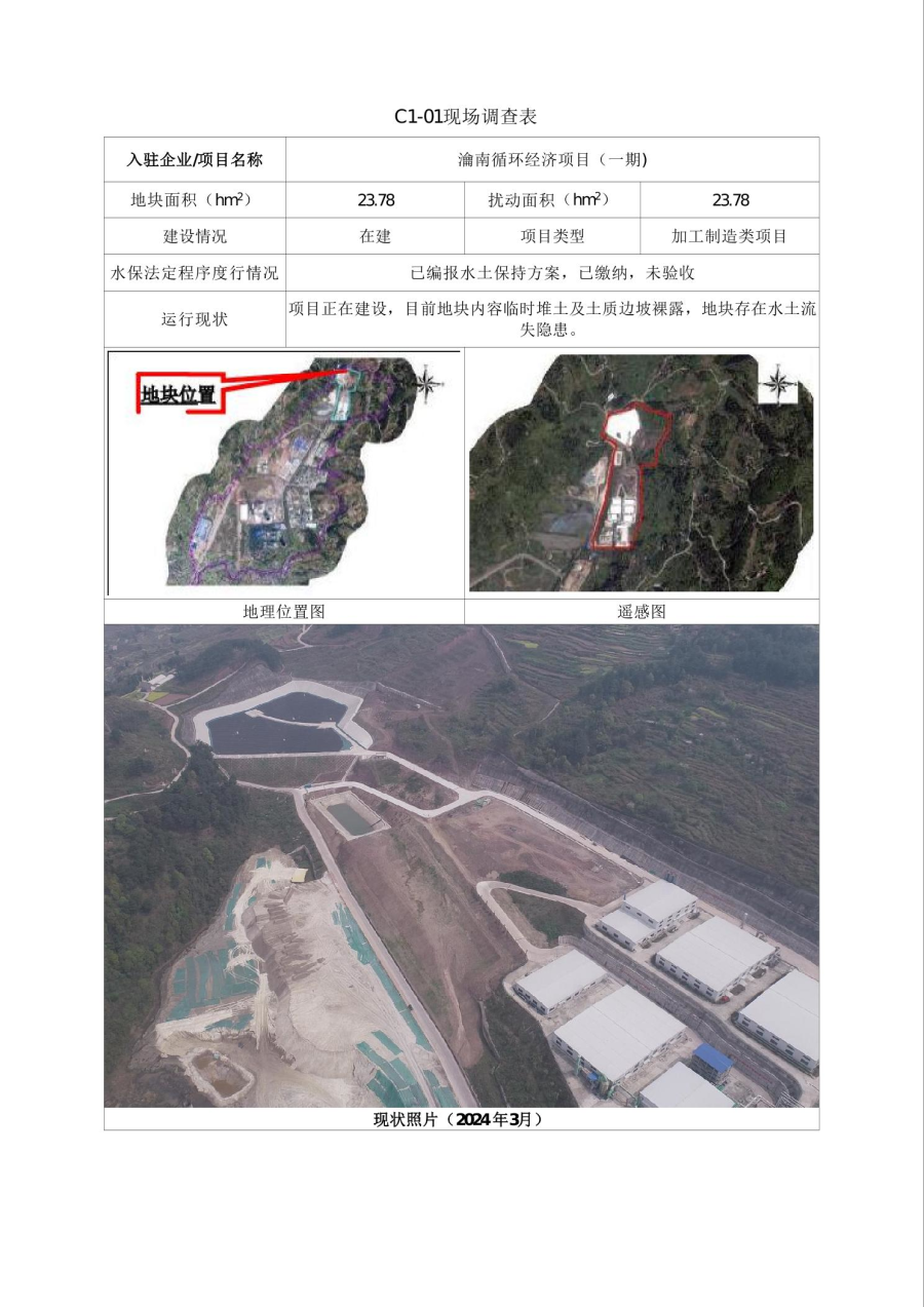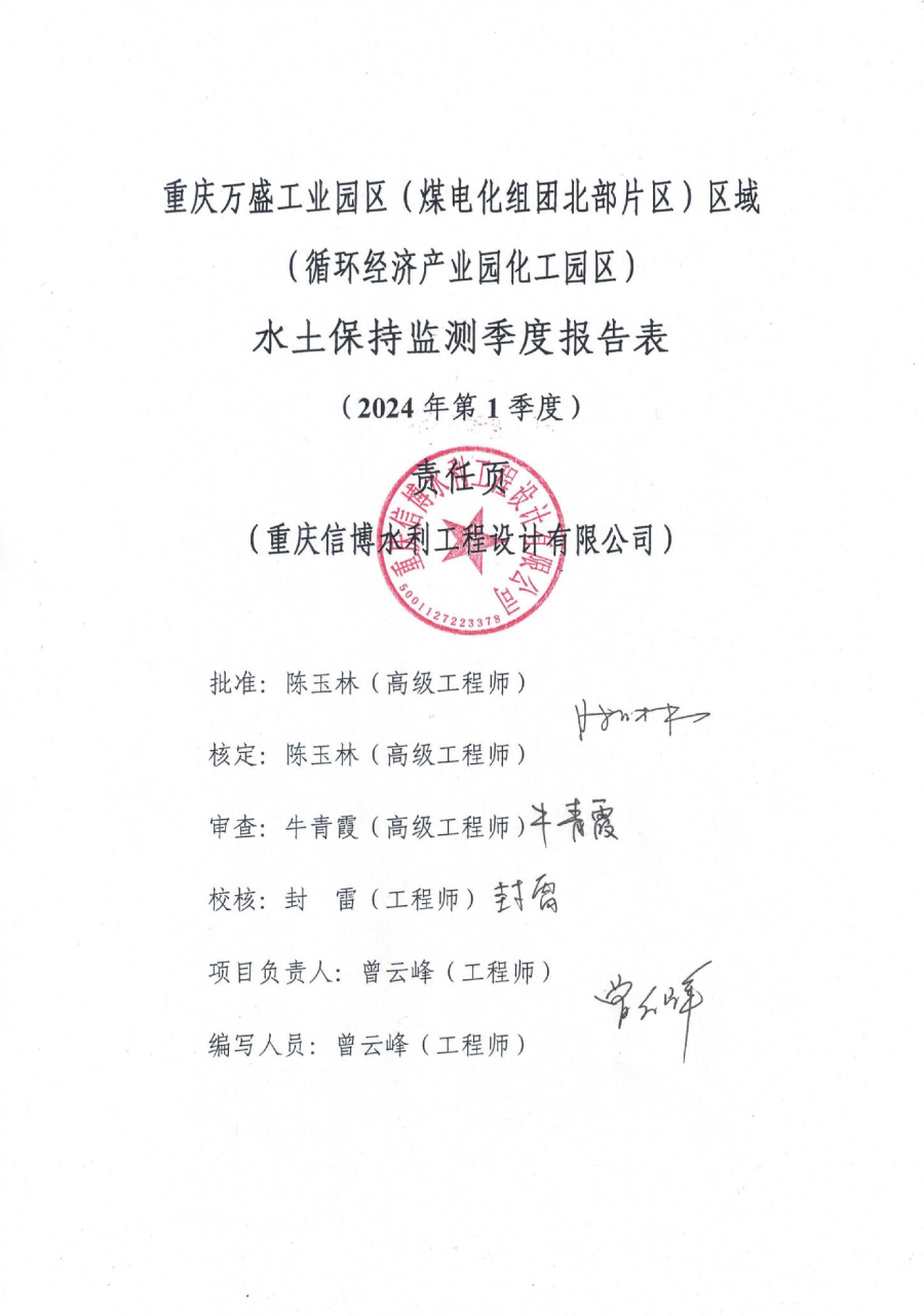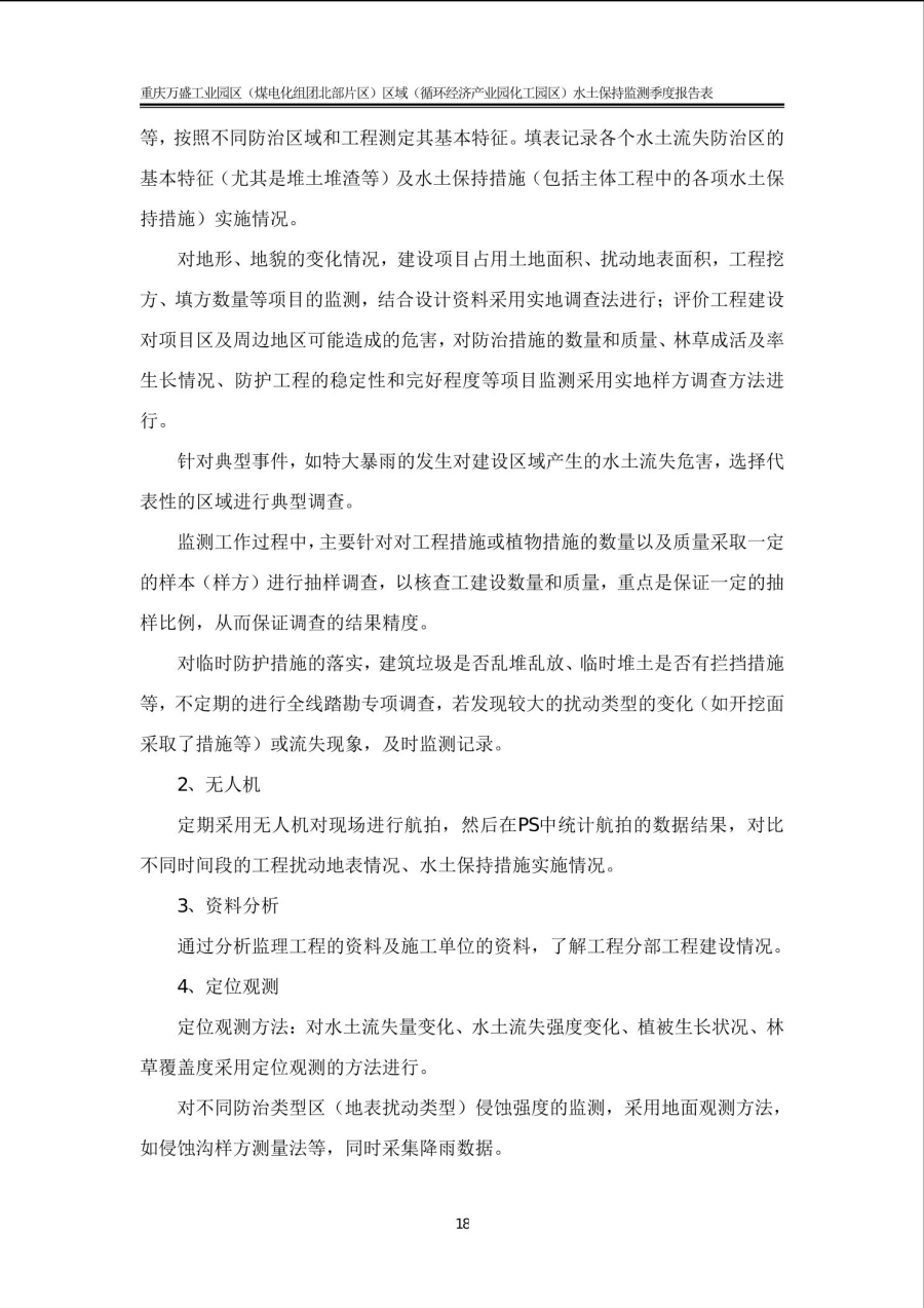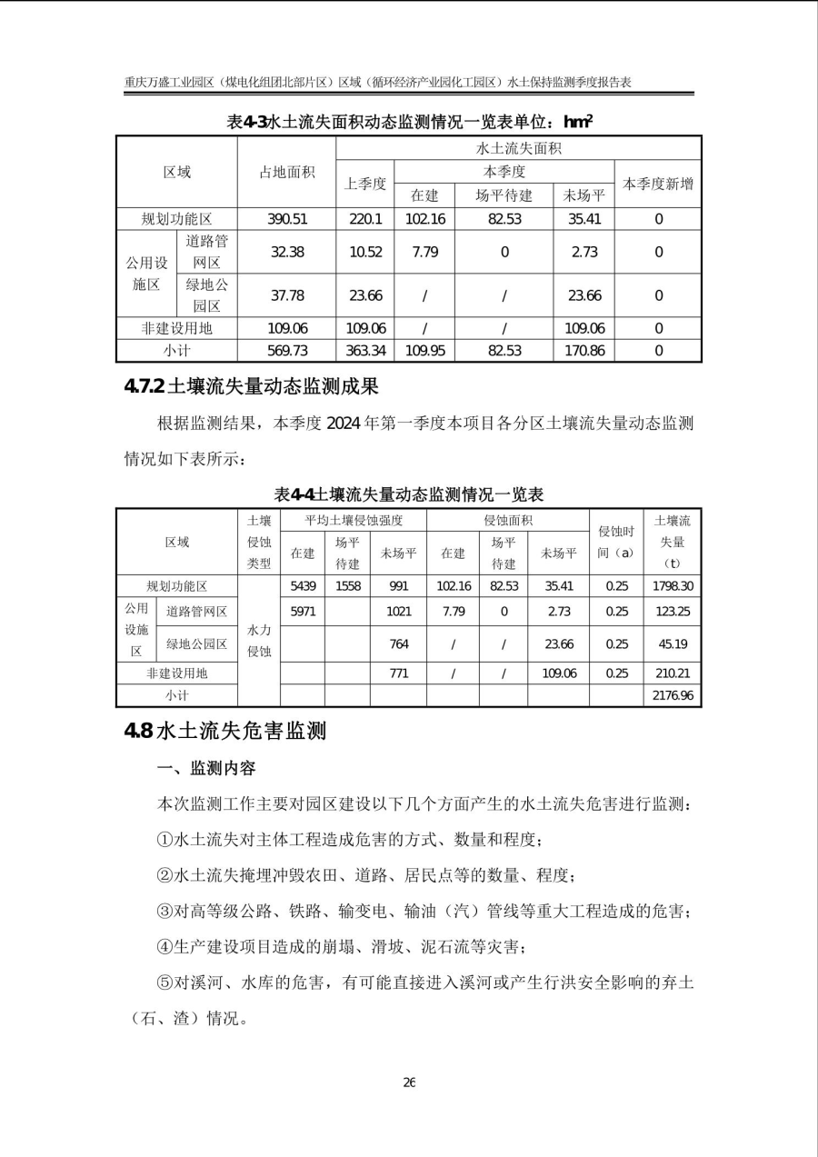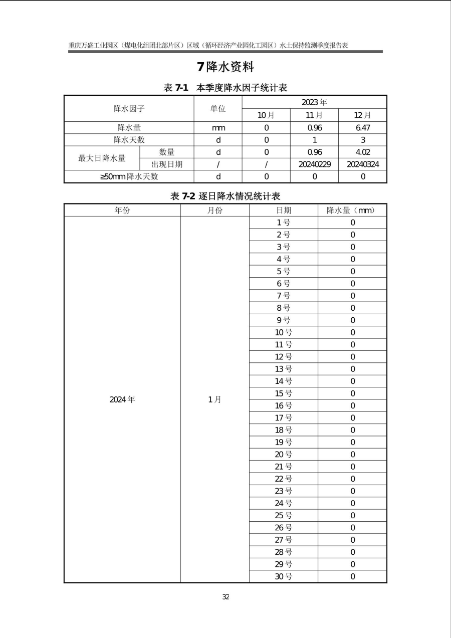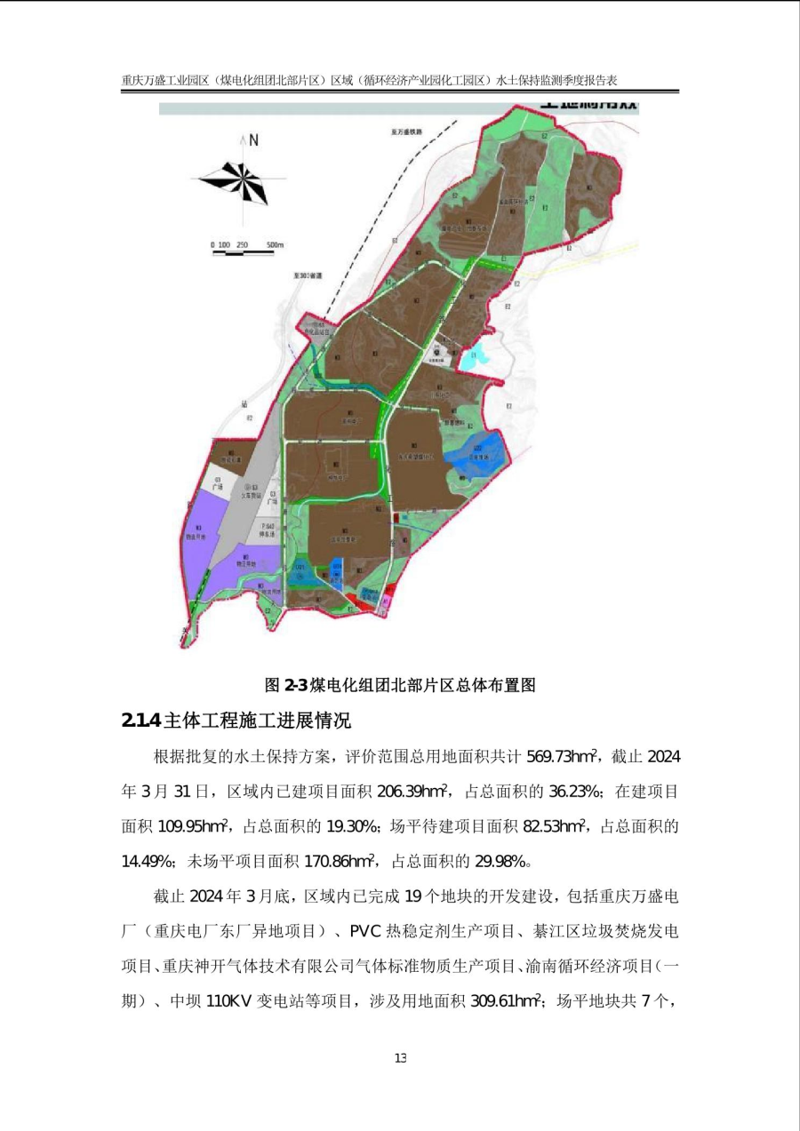 重庆万盛工业园区(煤电化组团北部片区)区域水土保持监测季度报告(2024年第1季度)