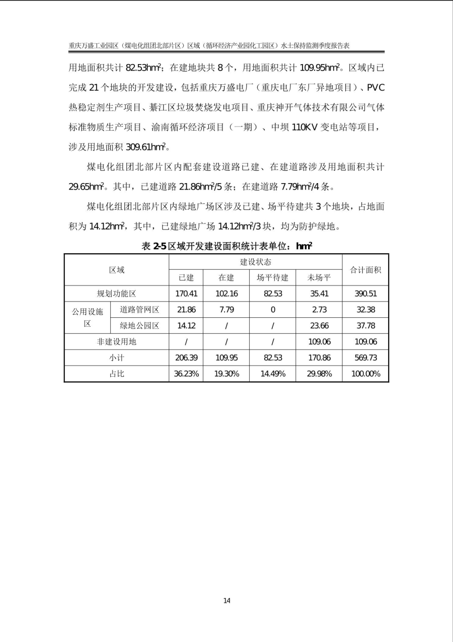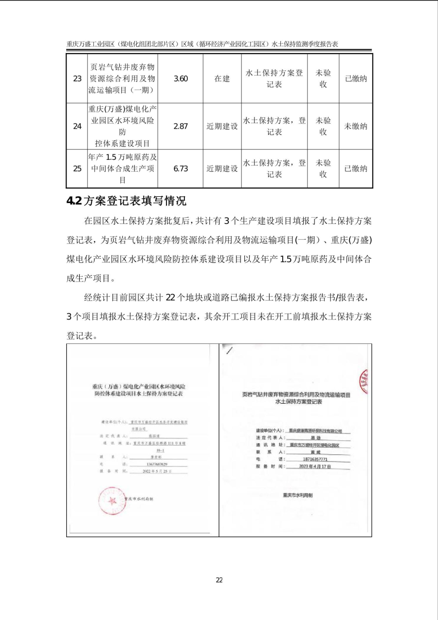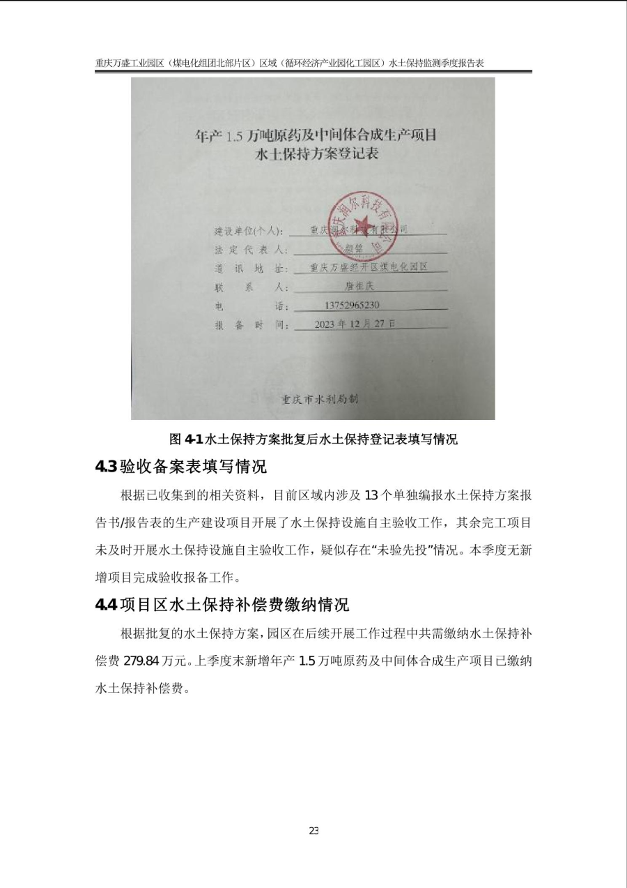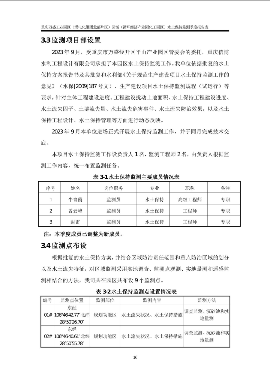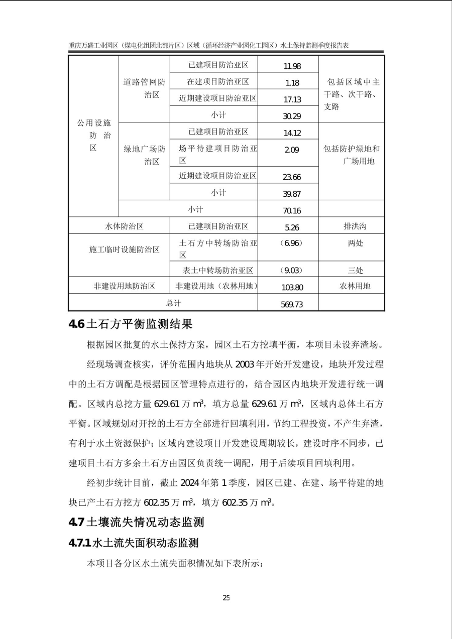 重庆万盛工业园区(煤电化组团北部片区)区域水土保持监测季度报告(2024年第1季度)