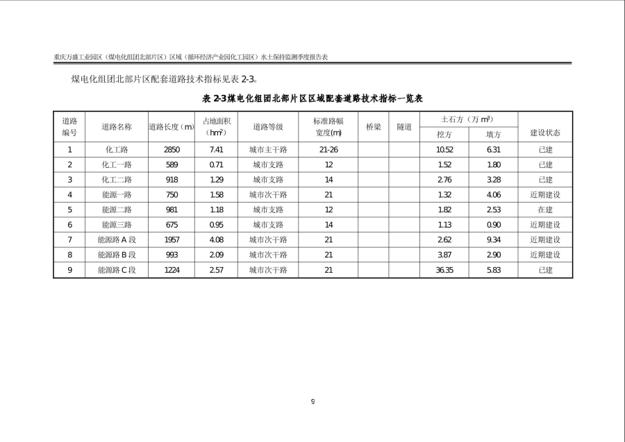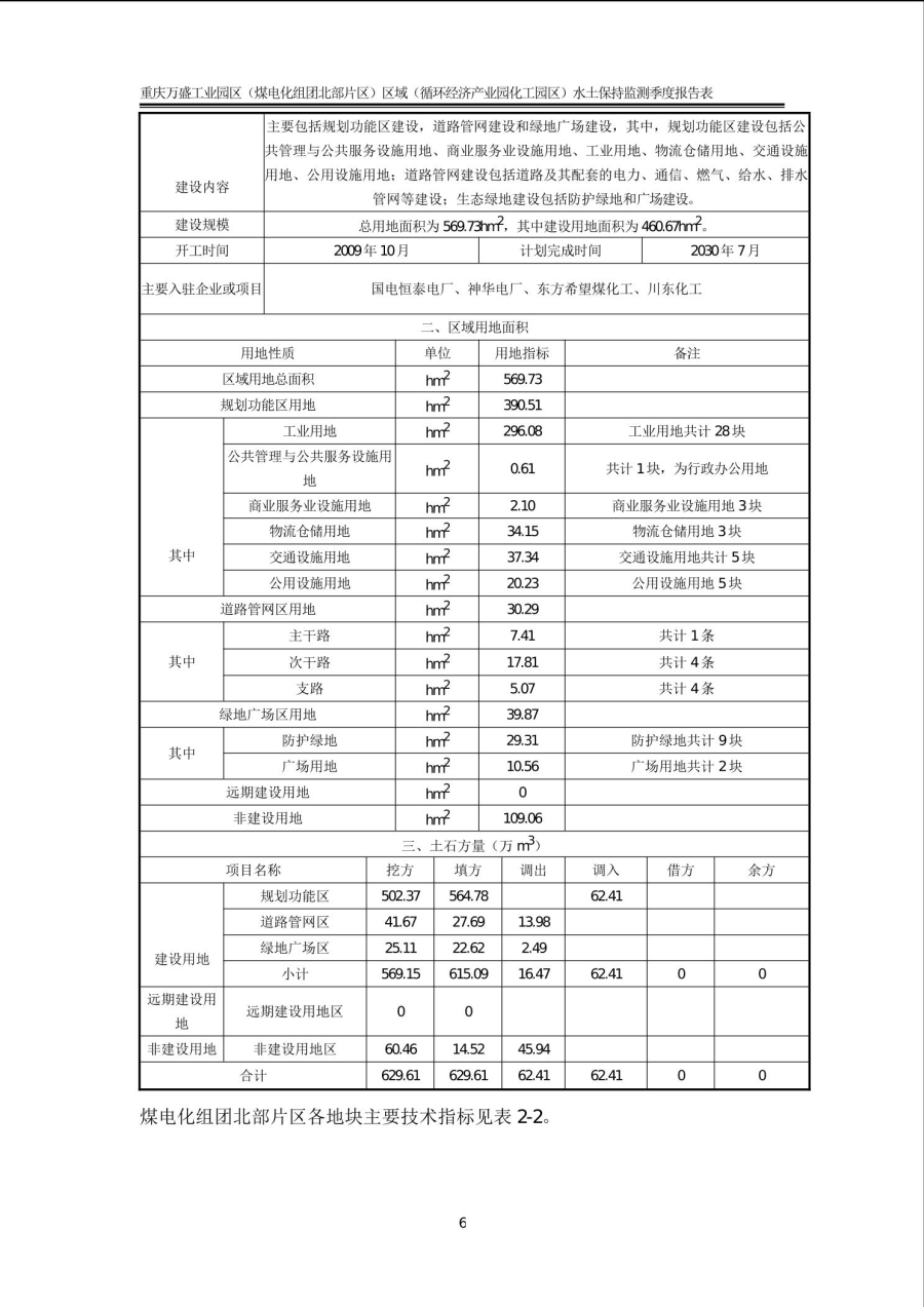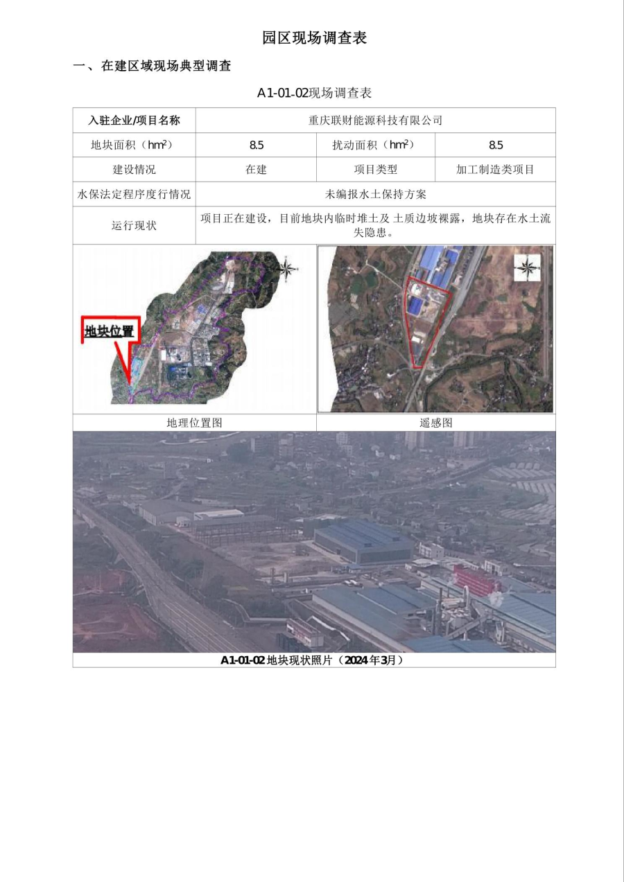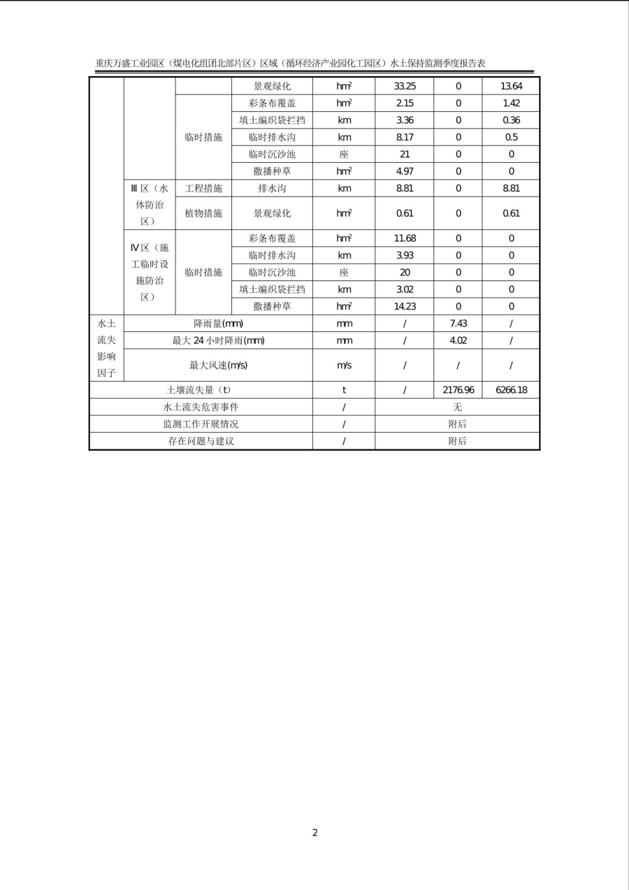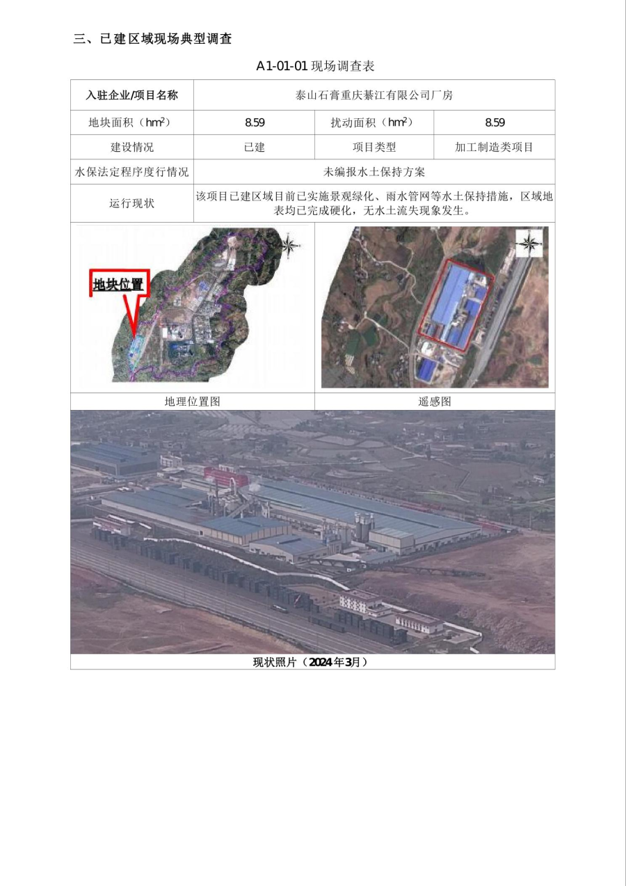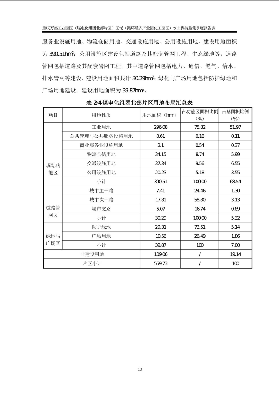 重庆万盛工业园区(煤电化组团北部片区)区域水土保持监测季度报告(2024年第1季度)