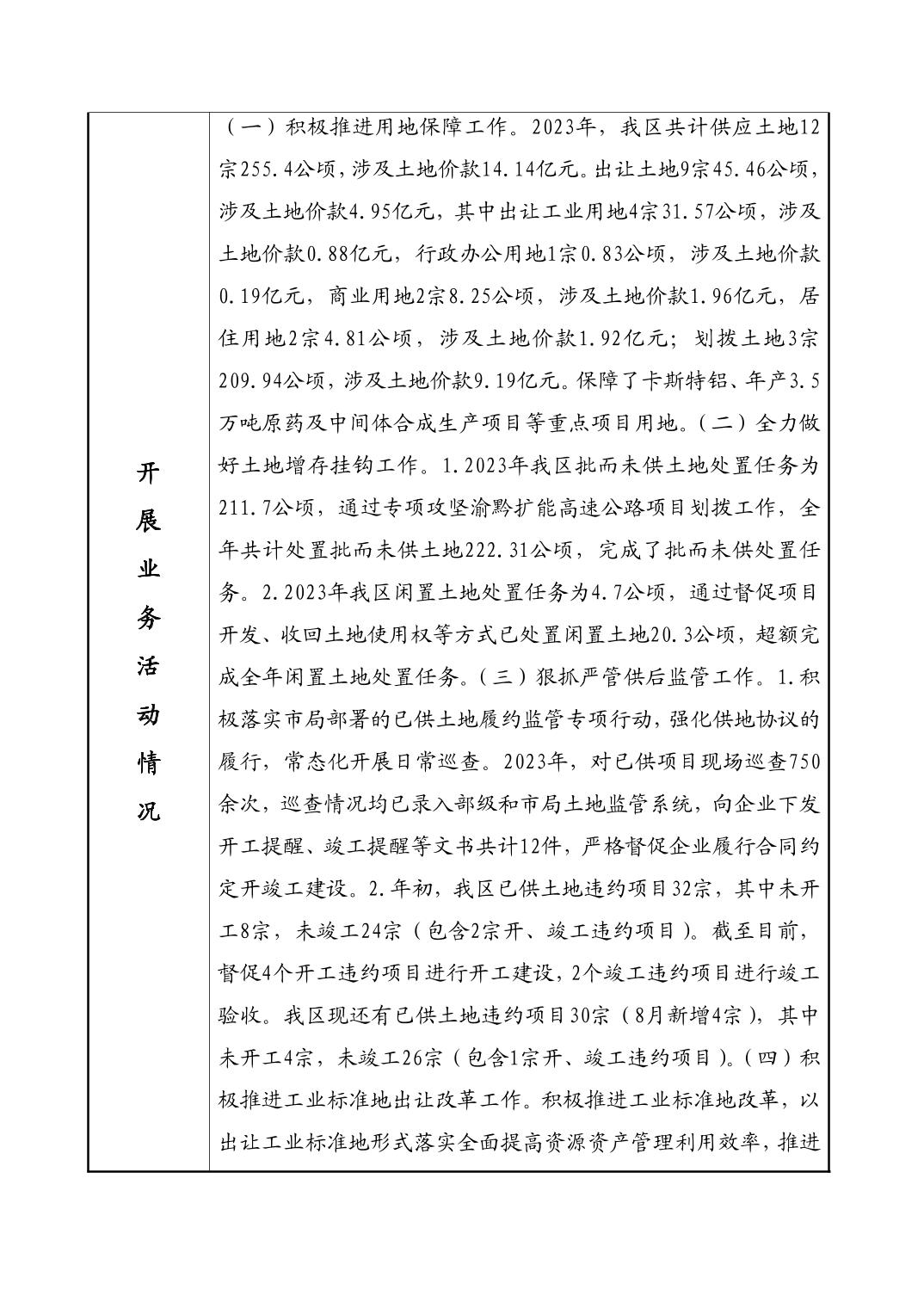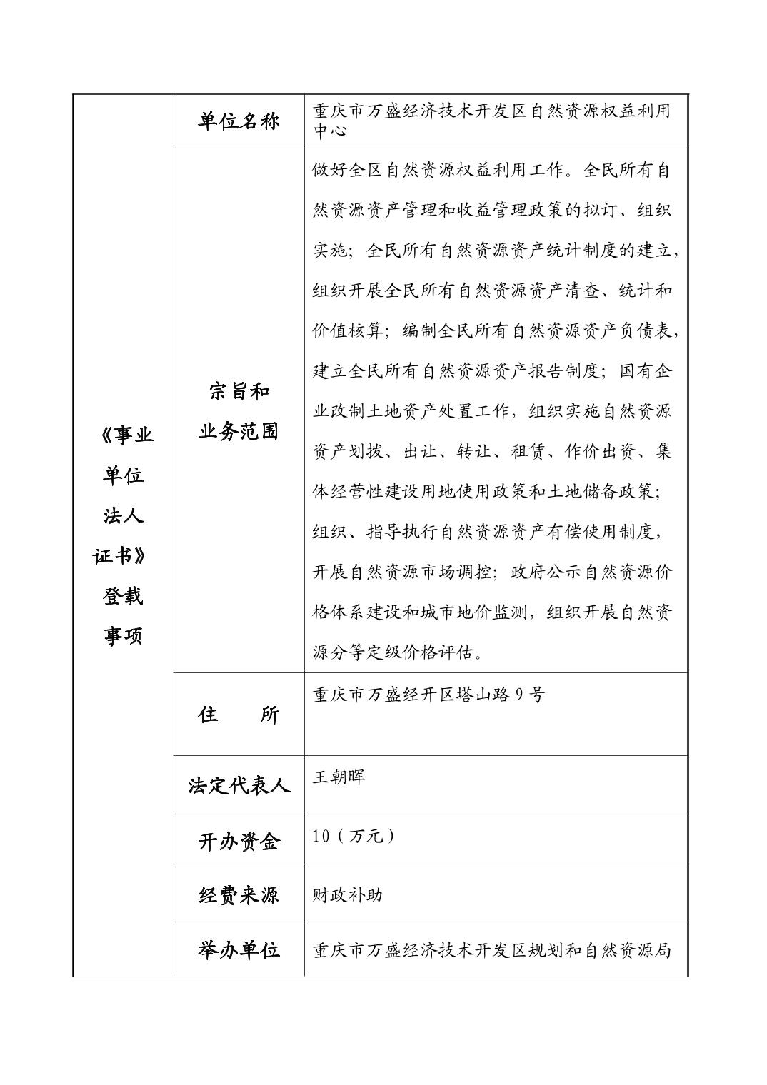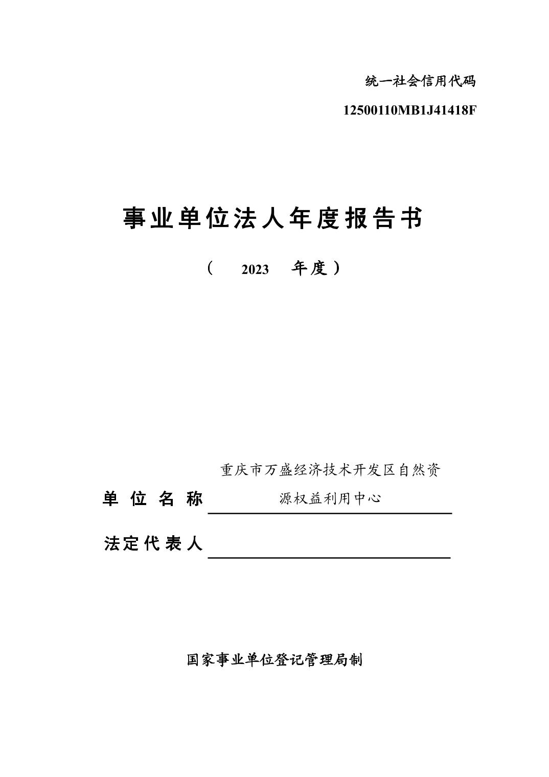 重庆市万盛经济技术开发区自然资源权益利用中心2023年事业单位法人年度报告书