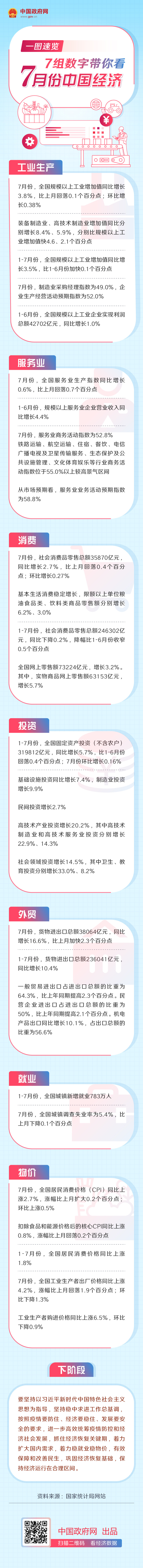 一图速览:7组数字带你看7月份中国经济